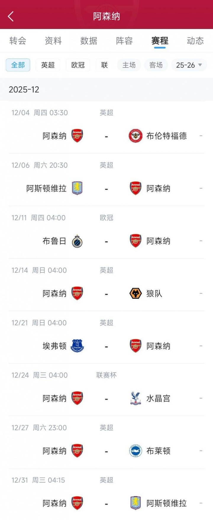 接下来的12月每周都是双赛,枪手能否扛下来呢?阿尔特塔将迎来考验……