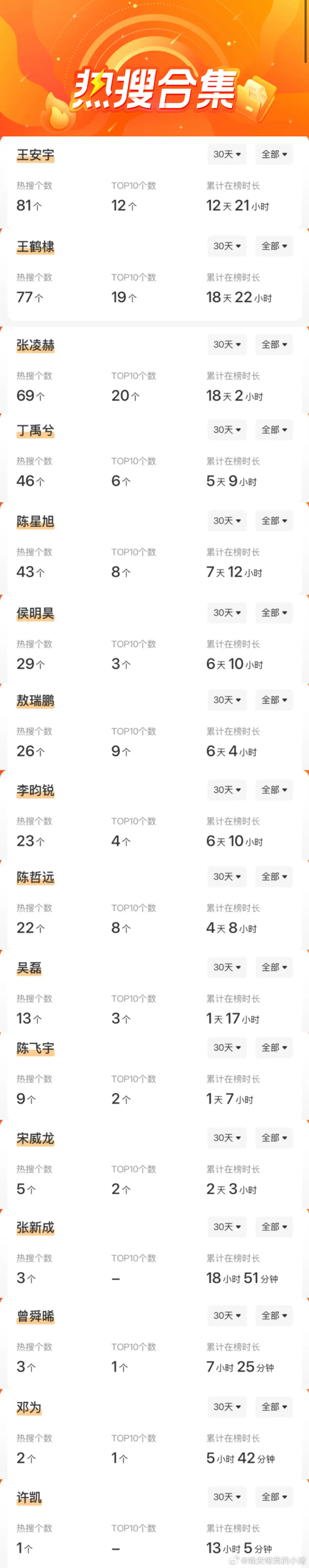 95 生花 rs 数量最多的:王安宇、孟子义