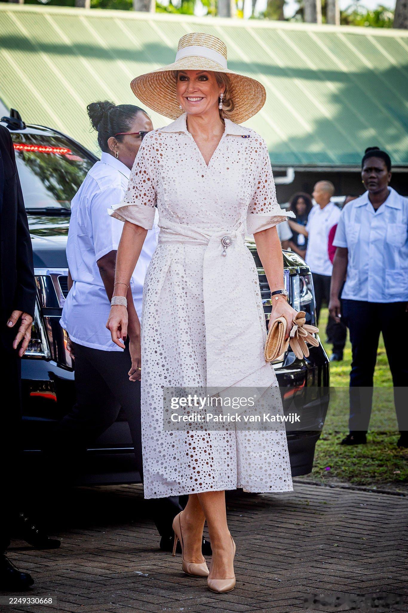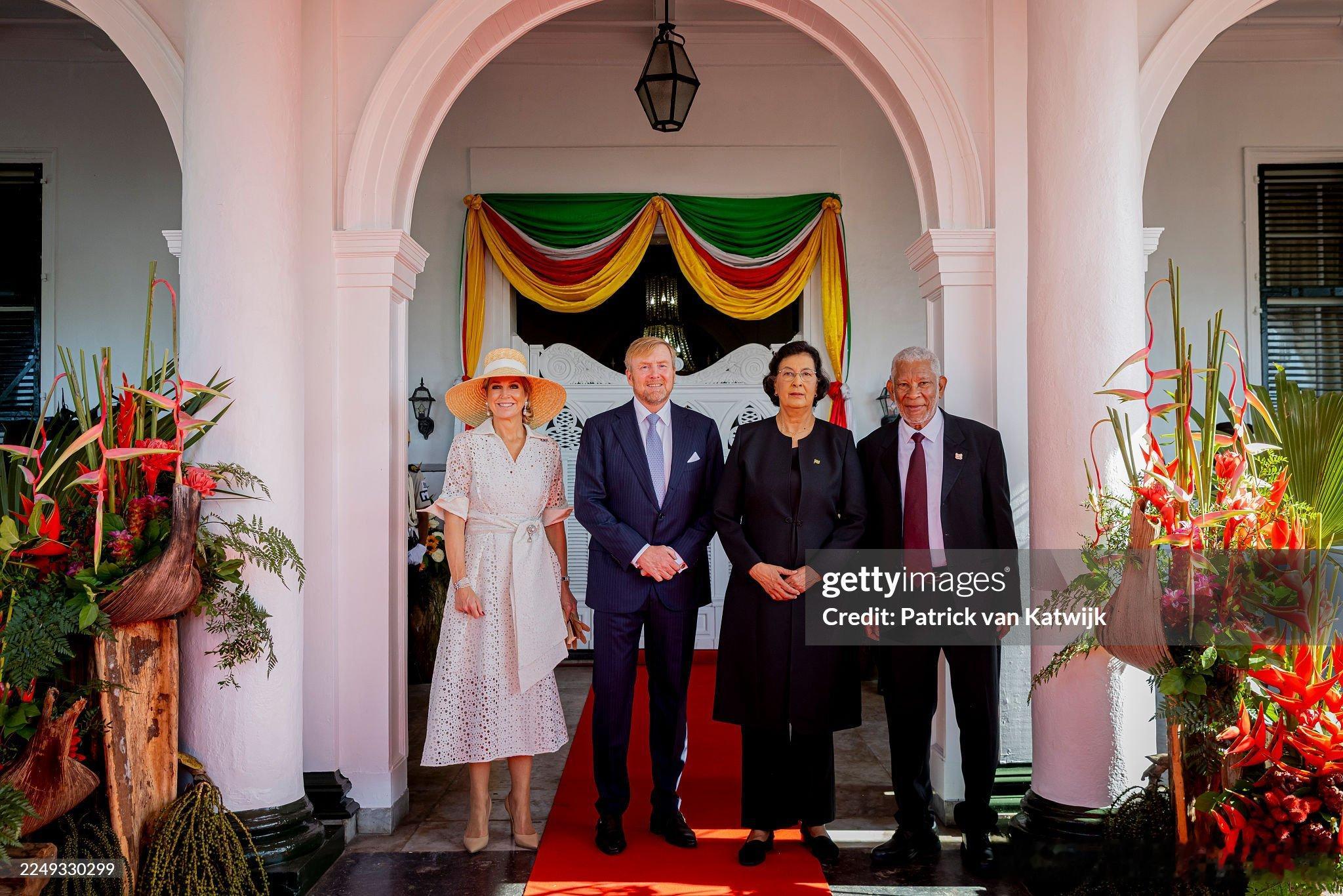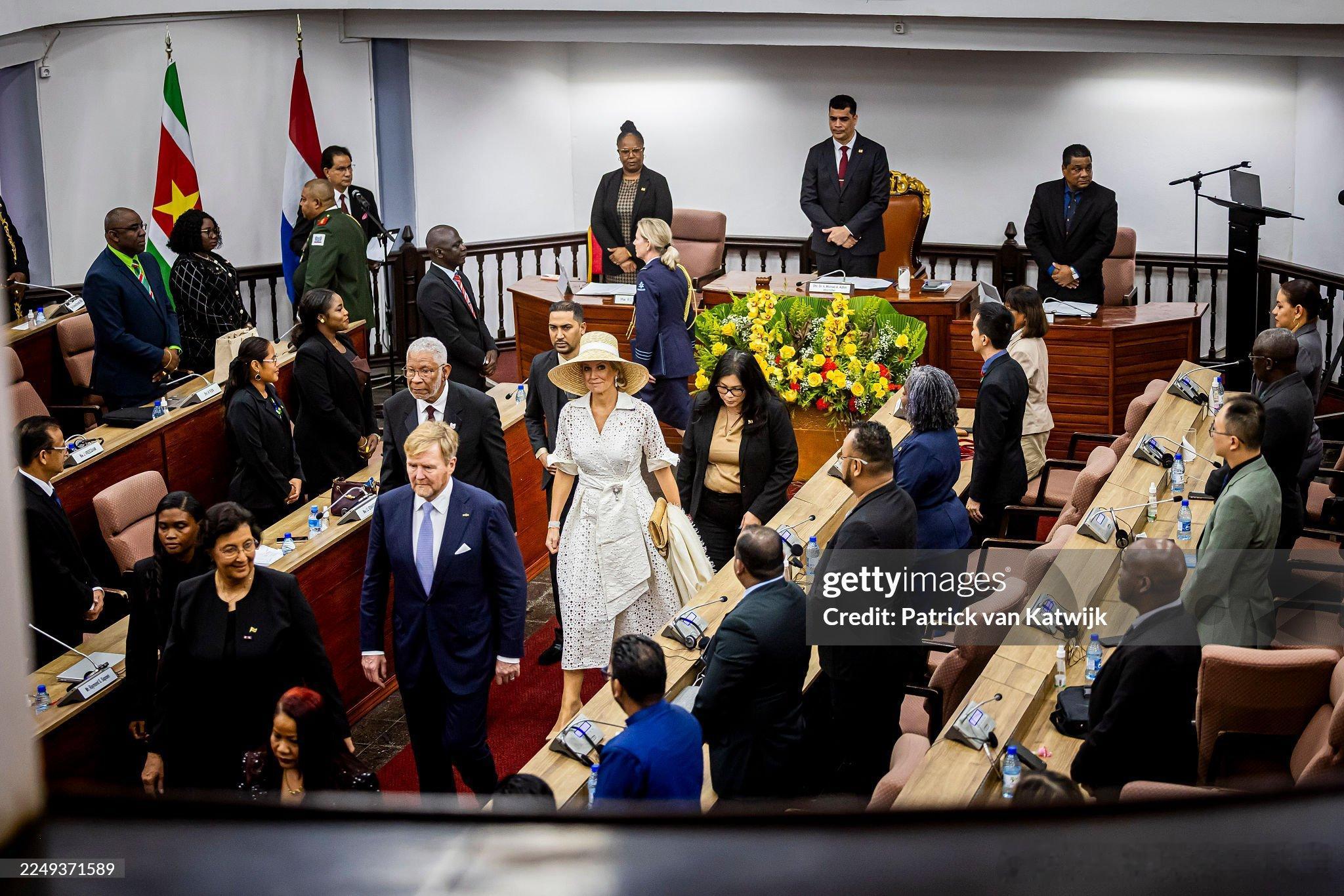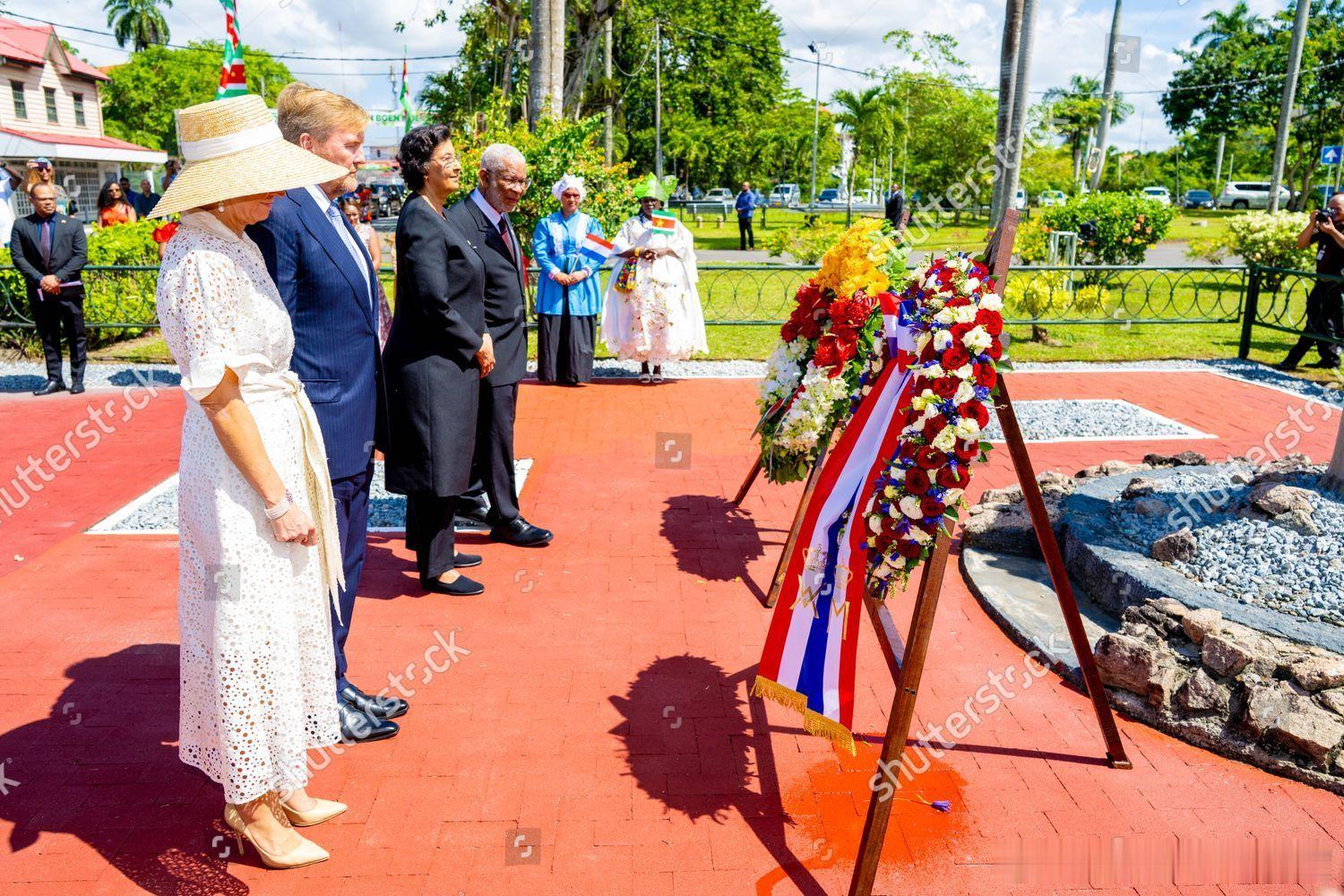 新闻 2025.11.30~12.1 荷兰国事访问苏里南,会见苏里南总统詹妮弗·吉尔林斯-西蒙斯,向象征“苏里南母亲”的玛玛·斯拉南雕像敬献花圈并先后访问国民议会,欧洲法院,会见苏里南奴隶后裔和原住民社区的代表(今年是苏里南脱离荷兰独立50周年),晚宴居然还有王冠(太敬业了),玛克西玛的几身新裙来自Natan。