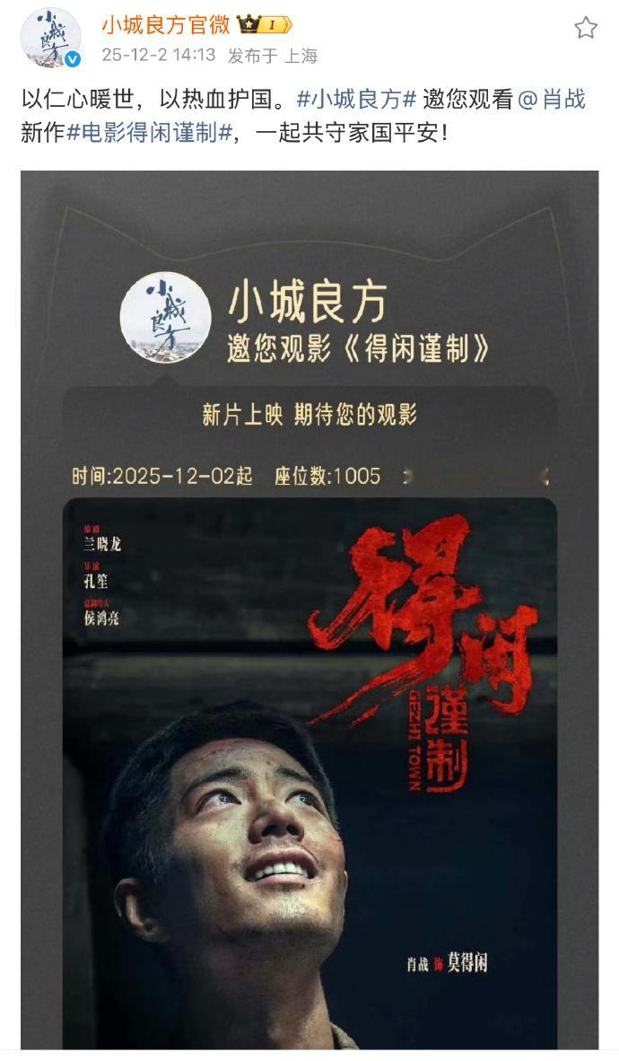 小城良方柠檬影业为肖战新电影包场肖战剧方包场得闲谨制肖战剧方包场得闲谨制,小城良方和柠檬影业为肖战新电影《得闲谨制》包场,咱就说期待战战的电影和电视剧都能早点见面啦~