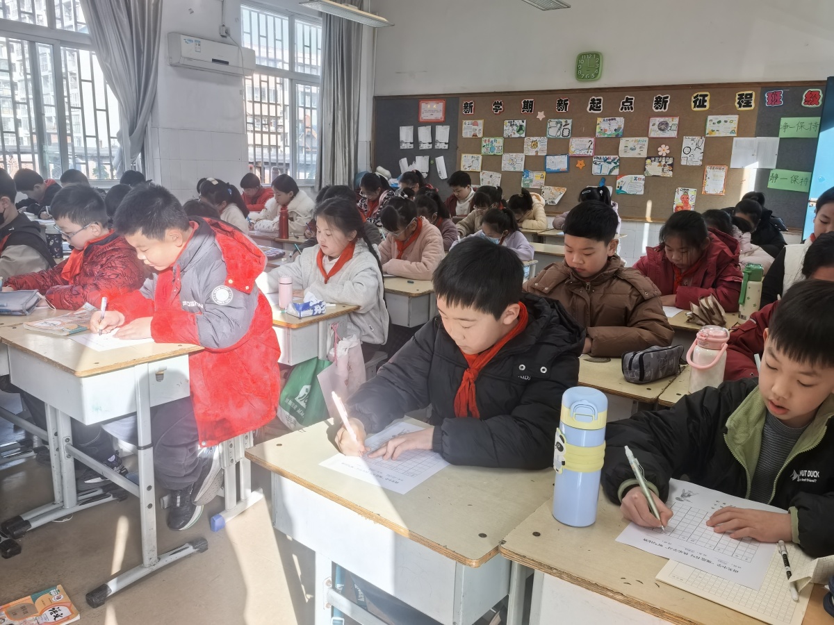 为使榜样的力量看得见、学得着,学校特别将本次比赛中“书写标兵”的优秀作品进行了集中展示。课间时分,展板前围满了驻足观看的学生。一幅幅字迹工整、卷面整洁的听写作品,成为了校园里一道亮丽的风景线。一位五年级的学生在观看后兴奋地说:“这些字写得太漂亮了!我要向他们学习,以后也要认真对待每一次书写,争取我的作品也能展览给大家看!”