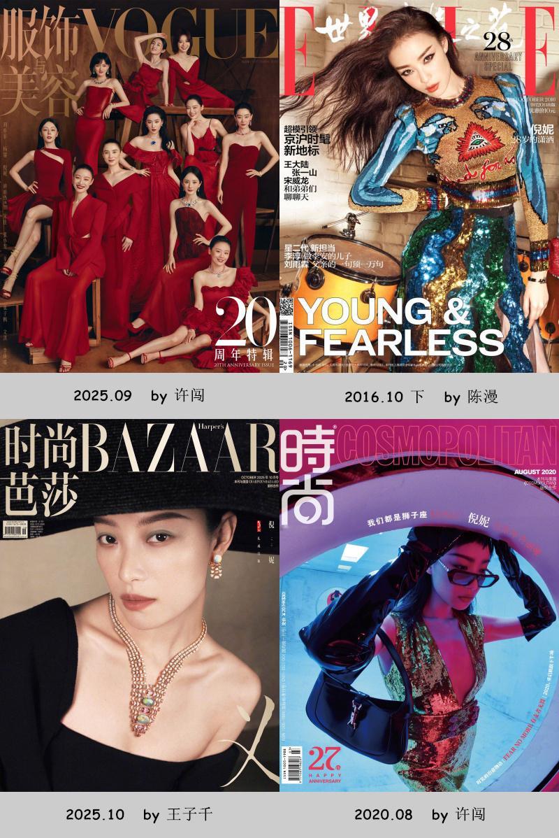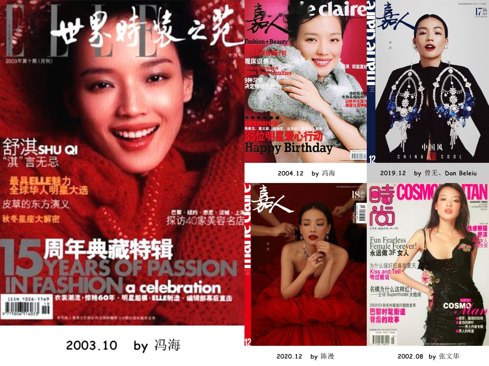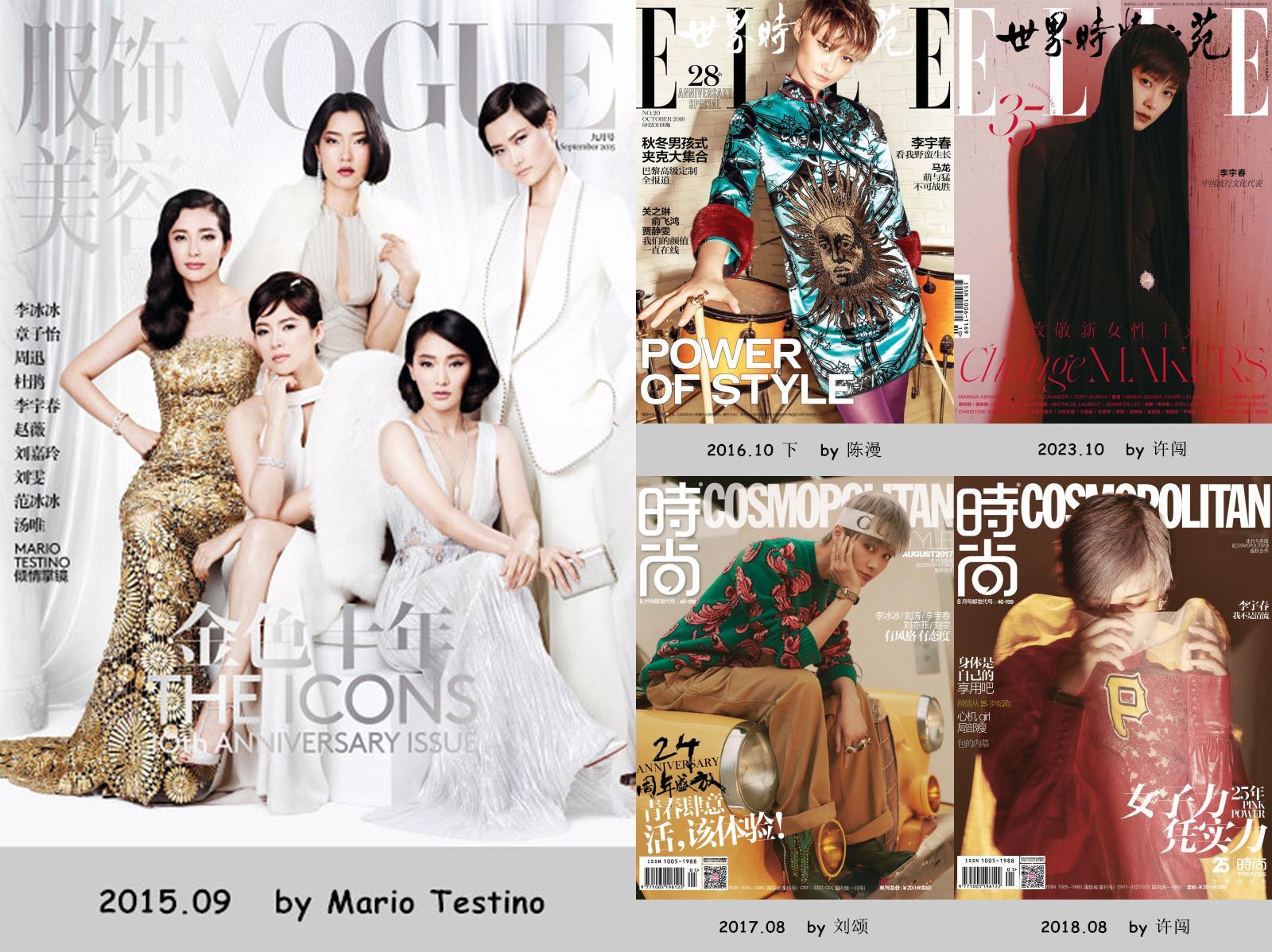 【专题】 — — 五大女刊 「周年刊」 名人刊数统计 二十一刊 :章子怡 十五刊 :周迅 八刊 :薇薇七刊 :冰冰 六刊 :李冰冰 五刊 :巩俐 、舒淇 、李宇春 四刊 :倪妮 、井柏然 三刊 :张曼玉 、王菲 、周冬雨 、刘亦菲 仅统计三刊及以上数量 .