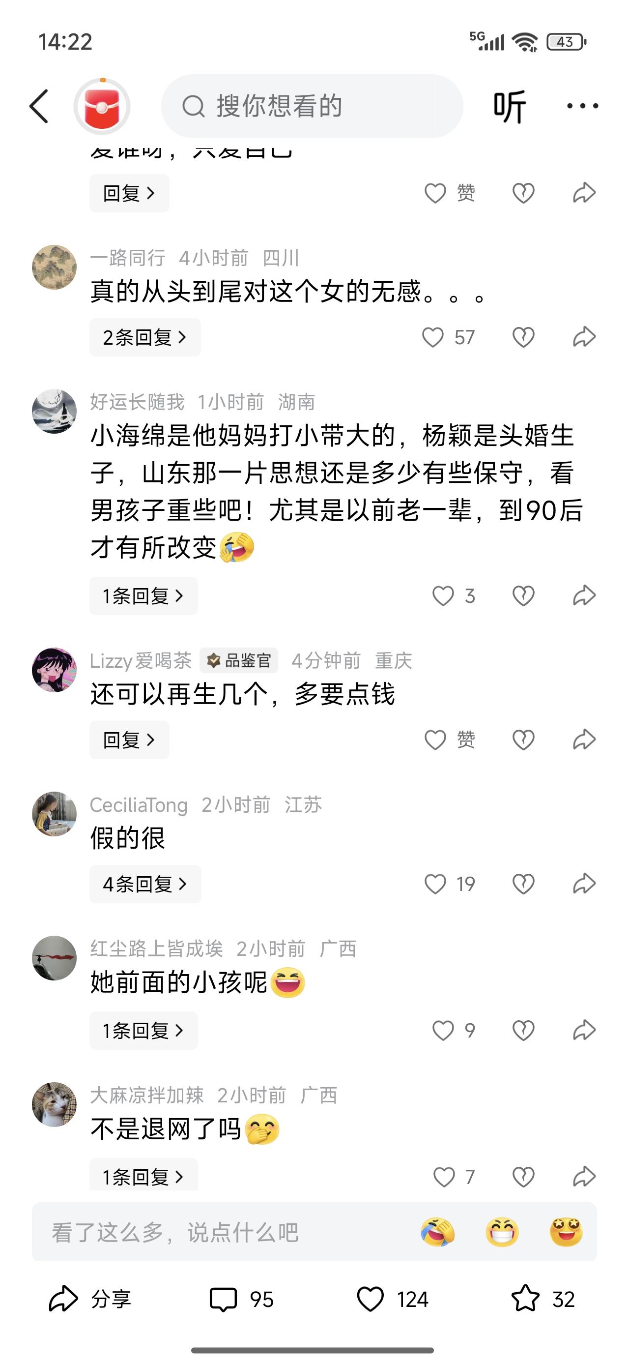 叶柯直播过程中,小女儿啼哭,略有不耐烦的说,小宝宝,叽哩哇啦。但还是起身去看了看宝宝。 单身妈妈从来没有容易。带娃是应该有经验了,之前也有过孩子。好像是两个。三胎应该轻车熟路。 这个女人挺好玩的,如果不是她在网上太高调,让老黄觉得没面子。她的今天,应该比现在好过。 烟威青三地,婆婆很重要,估计她后来者,没有办法获得老婆婆的心。每一步,都很难。 老婆婆还是倾向于杨颖。毕竟北鼻生的是儿子。 要说重男轻女吧,也不是。主要是也看妈妈。妈妈不讨喜,孩子也差点劲儿。子凭母贵,具象化了。
