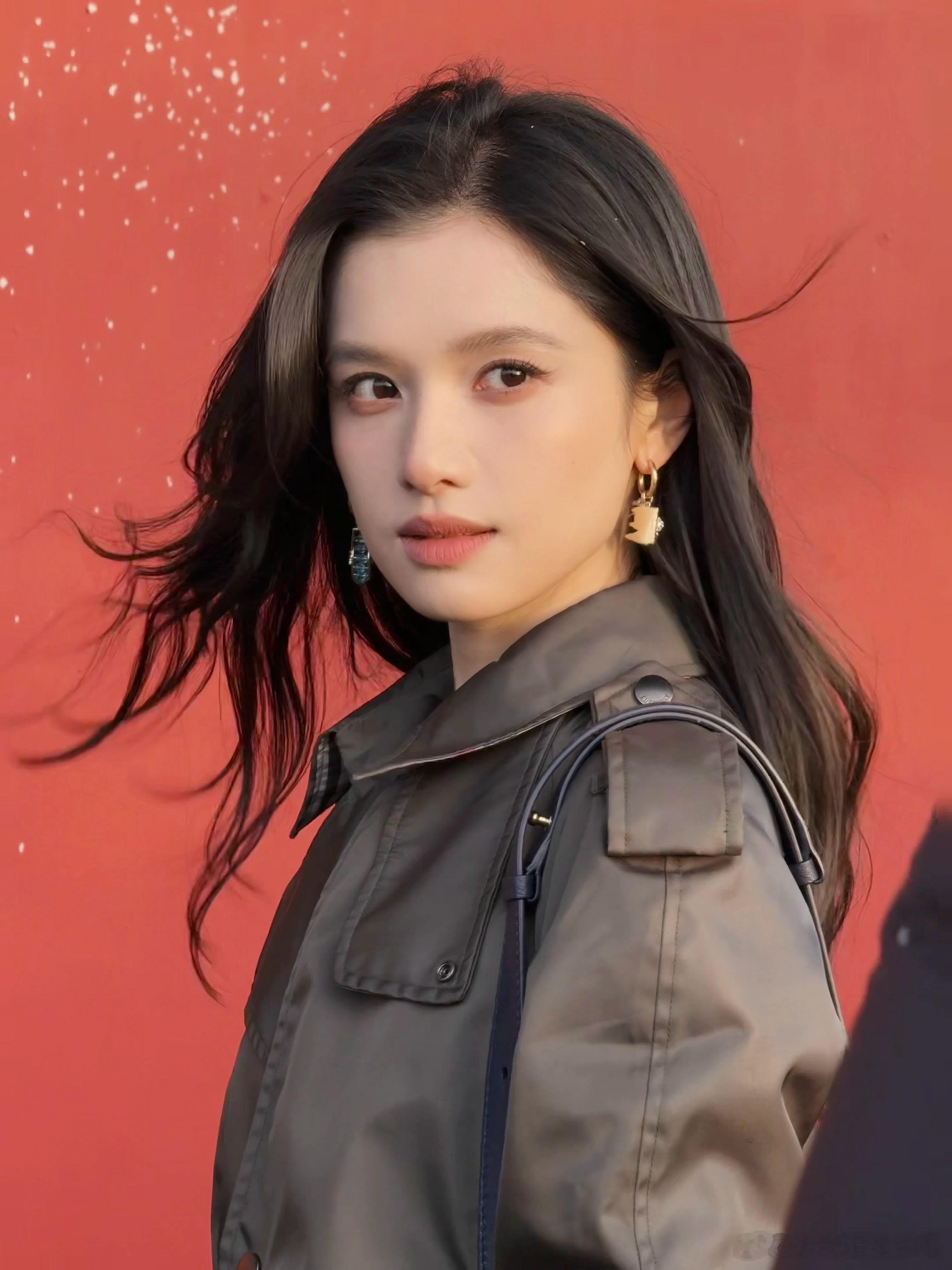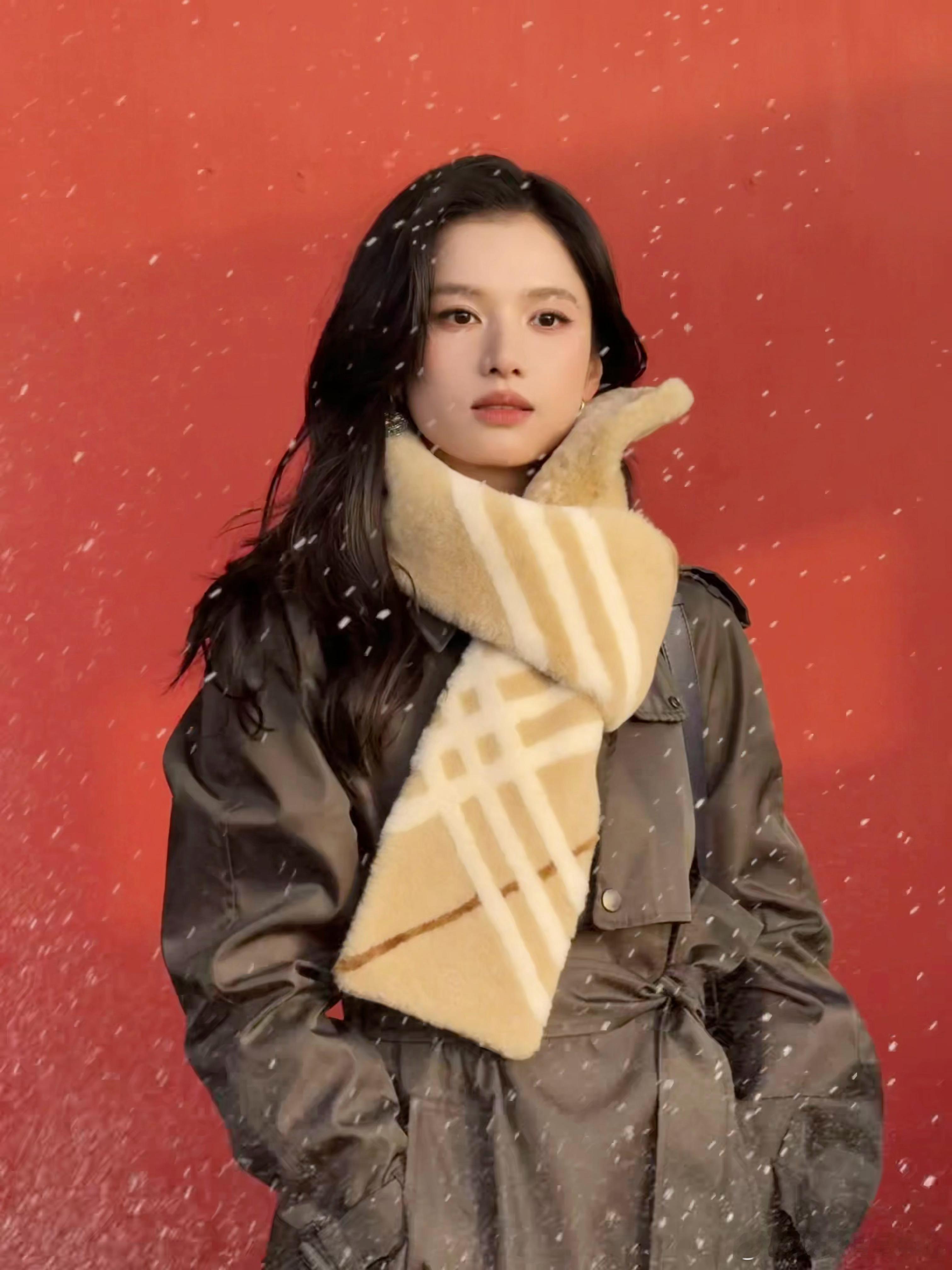 张婧仪冬日女神来的 绝不允许任何人错过这组冬日随拍!深色大衣搭配米色条纹围巾,完