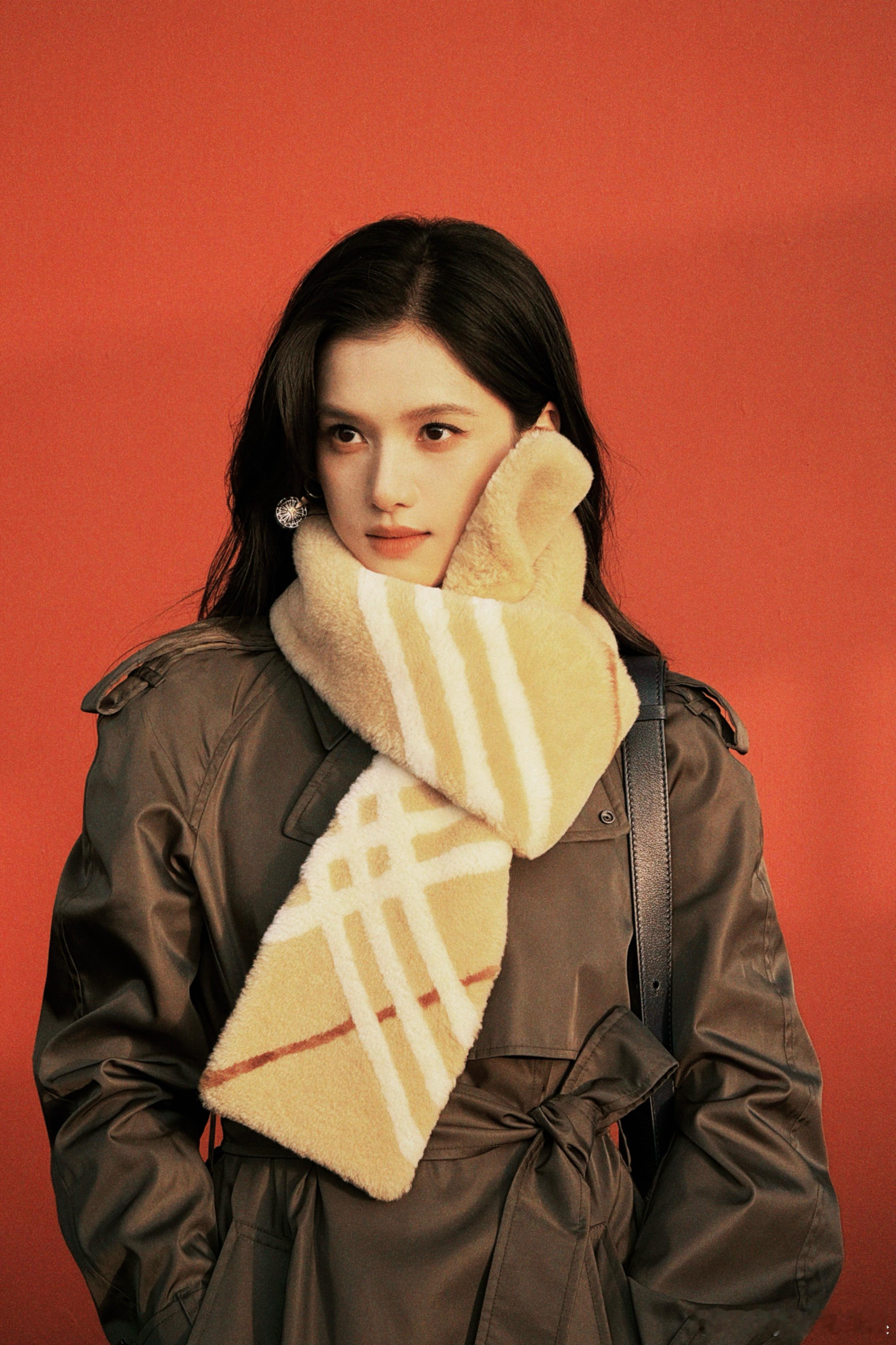 张婧仪冬日女神来的 绝不允许任何人错过这组冬日随拍!深色大衣搭配米色条纹围巾,完全是冬日女神来的呀