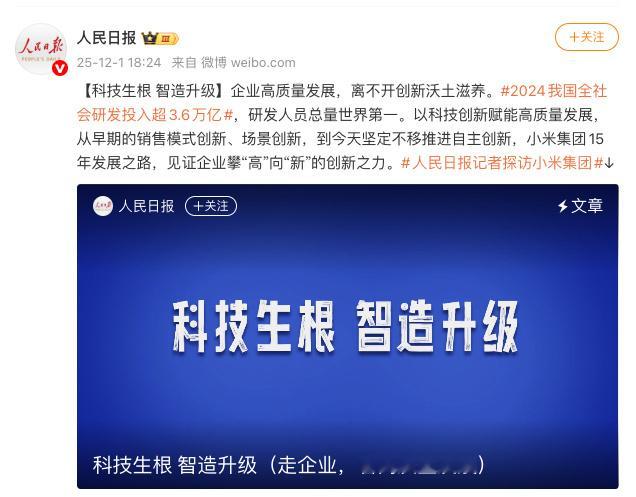 人民日报谈小米集团高质量发展小米分享7篇最新研究成果 从玄戒芯片到6G原型机,从