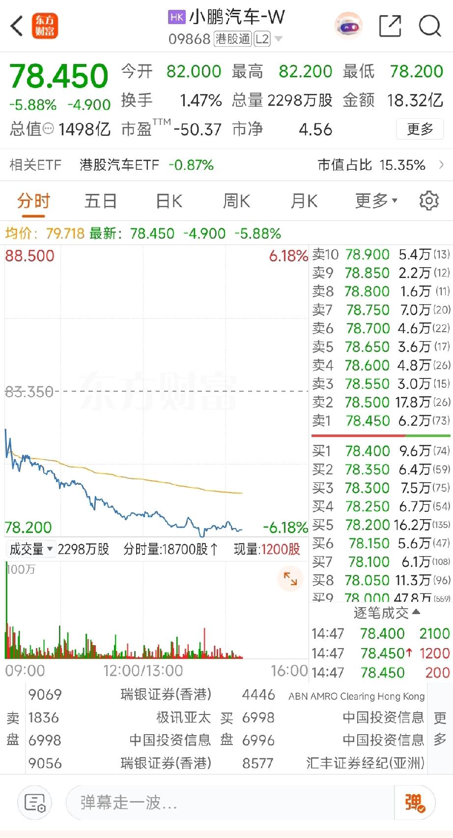 哎,真是愁死人了!小鹏汽车股价暴跌了6个点。 我在看了小鹏汽车发布机器人之后,觉得小鹏机器人未来前景十分光明,认定这是一家高科技公司,于是买入了小鹏汽车的股票。可这小鹏汽车,自发布机器人后,也就发布机器人那两天股价涨了,其余时间便一路下跌。 按道理来说,大家都应该看好小鹏汽车,也不知道什么原因。