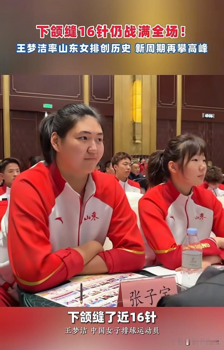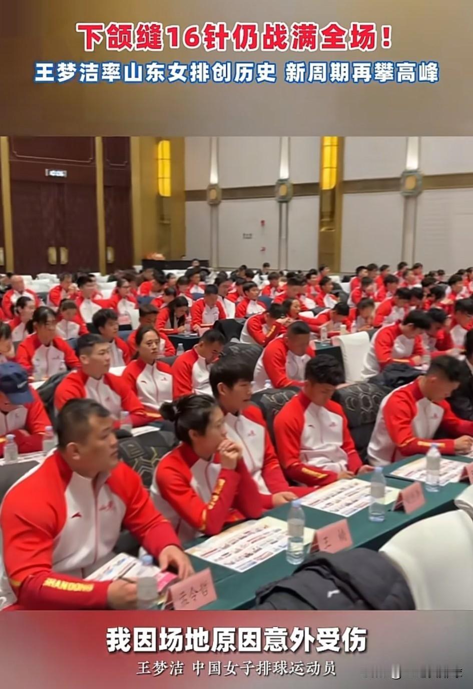 泪目了!王梦洁,你真的很棒! 王梦洁在山东全运会总结大会上发言。 在全运会金牌战之前,因为场地原因意外受伤,下颚缝了将近16针。 当时她担心的不是疼痛,而是伤病会不会影响让球队错失登上领奖台的机会。 王梦洁爱排球的心也是纯粹的。 后面王梦洁带着伤病打满全场,助力山东女排获得银牌,创造了历史。 致敬每一位带伤出战的运动员,你们的坚守不放弃值得球迷尊重。 还有李盈莹等其他球员! 爱你们!