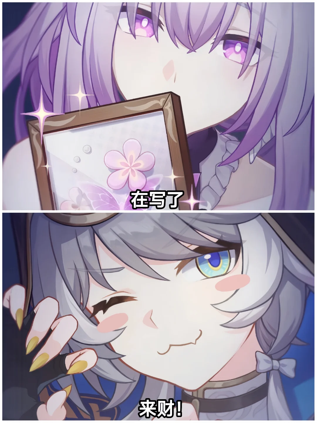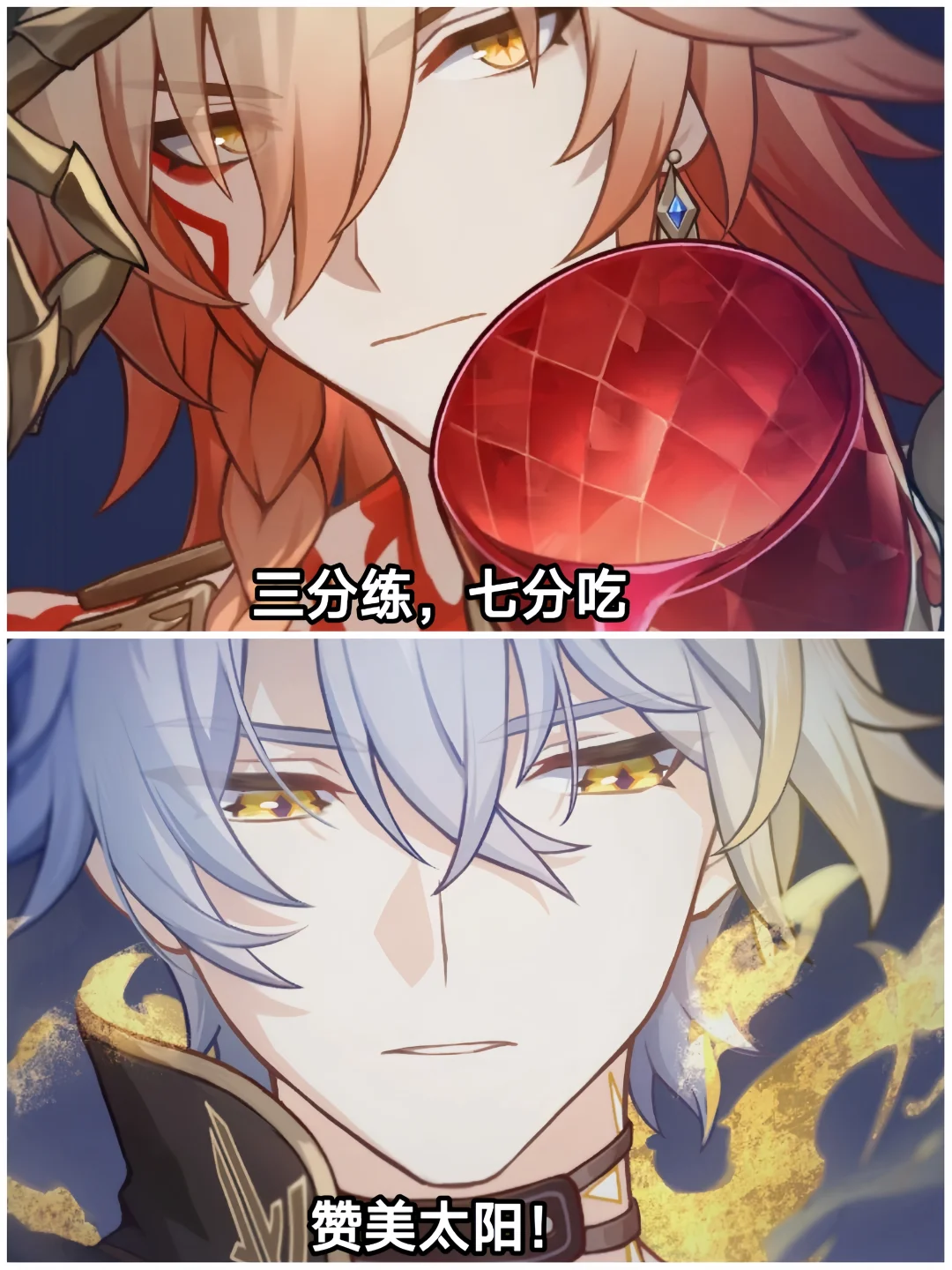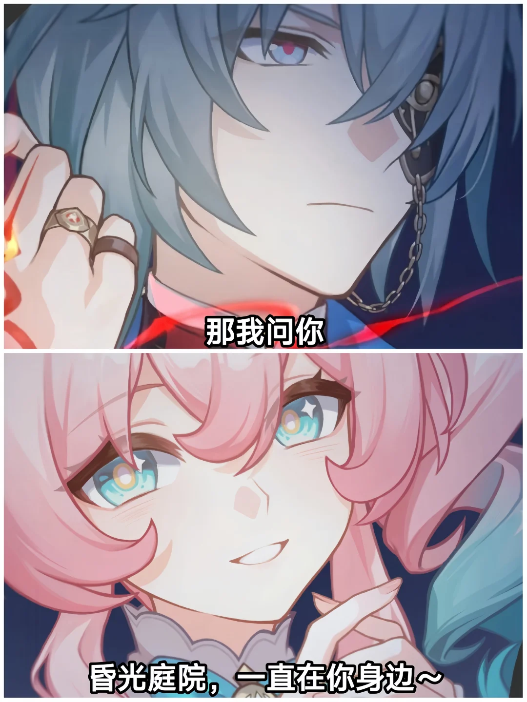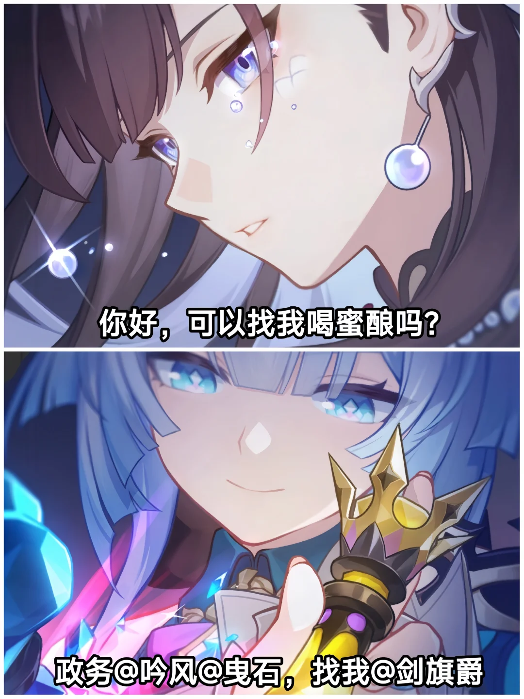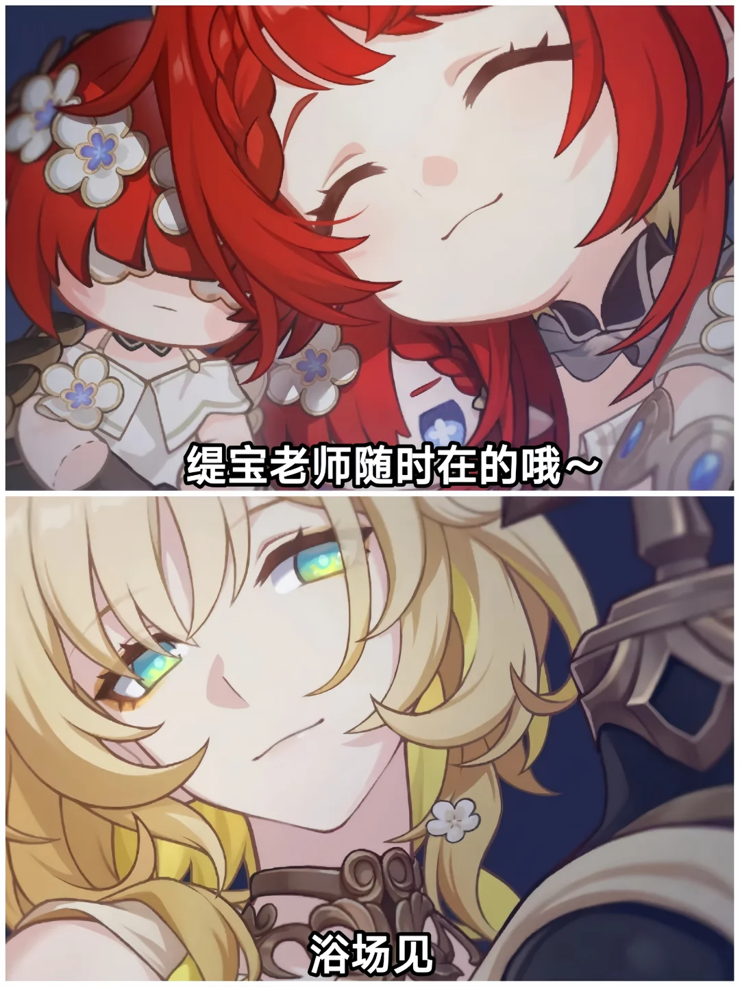 白厄——赞美太阳! 万敌——三分练,七分吃 缇宝——缇宝老师随时都在哦~ 阿格莱雅——浴场见 那刻夏——那我问你 风堇——昏光庭院,一直在你身边 长夜月——■■,今晚别睡太沉 昔涟——要相信浪漫一如初见🎶 海瑟音——你好,可以找我喝蜜酿吗? 刻律德菈——政务a吟风a曳石,找我a剑旗爵 遐蝶——在写了 赛飞儿——来财!