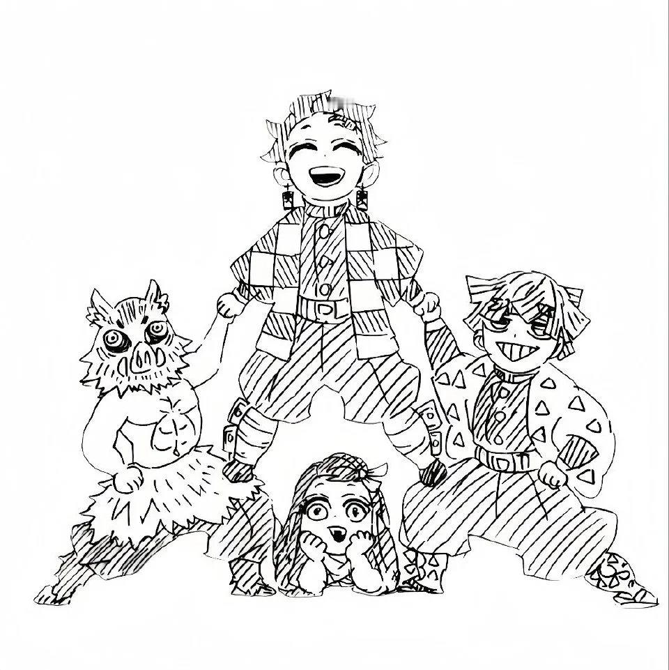 鬼灭之刃 鳄鱼老师画的四小只太可爱了