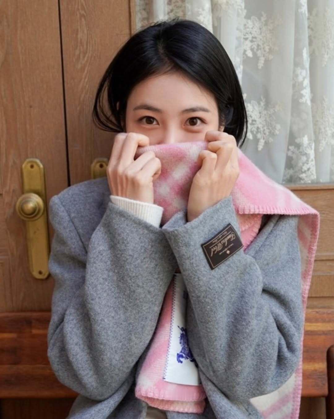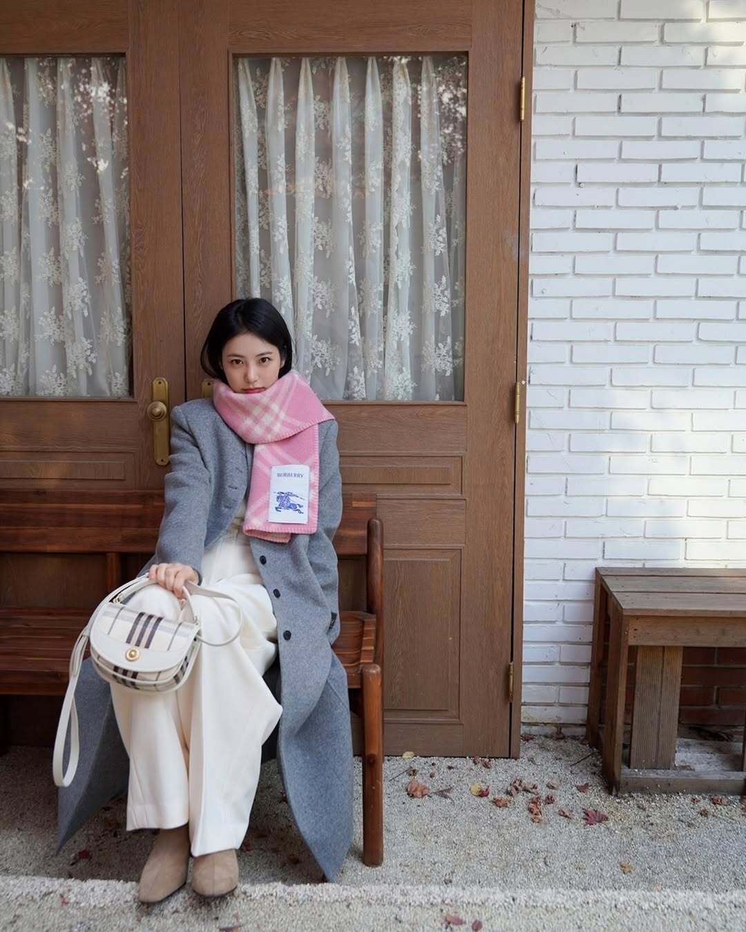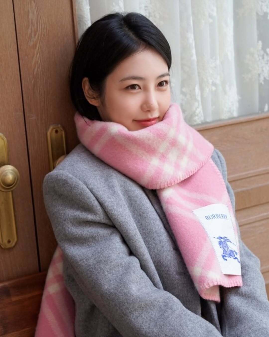 辛叡恩的粉色Burberry围巾🧣这个颜色也美诶