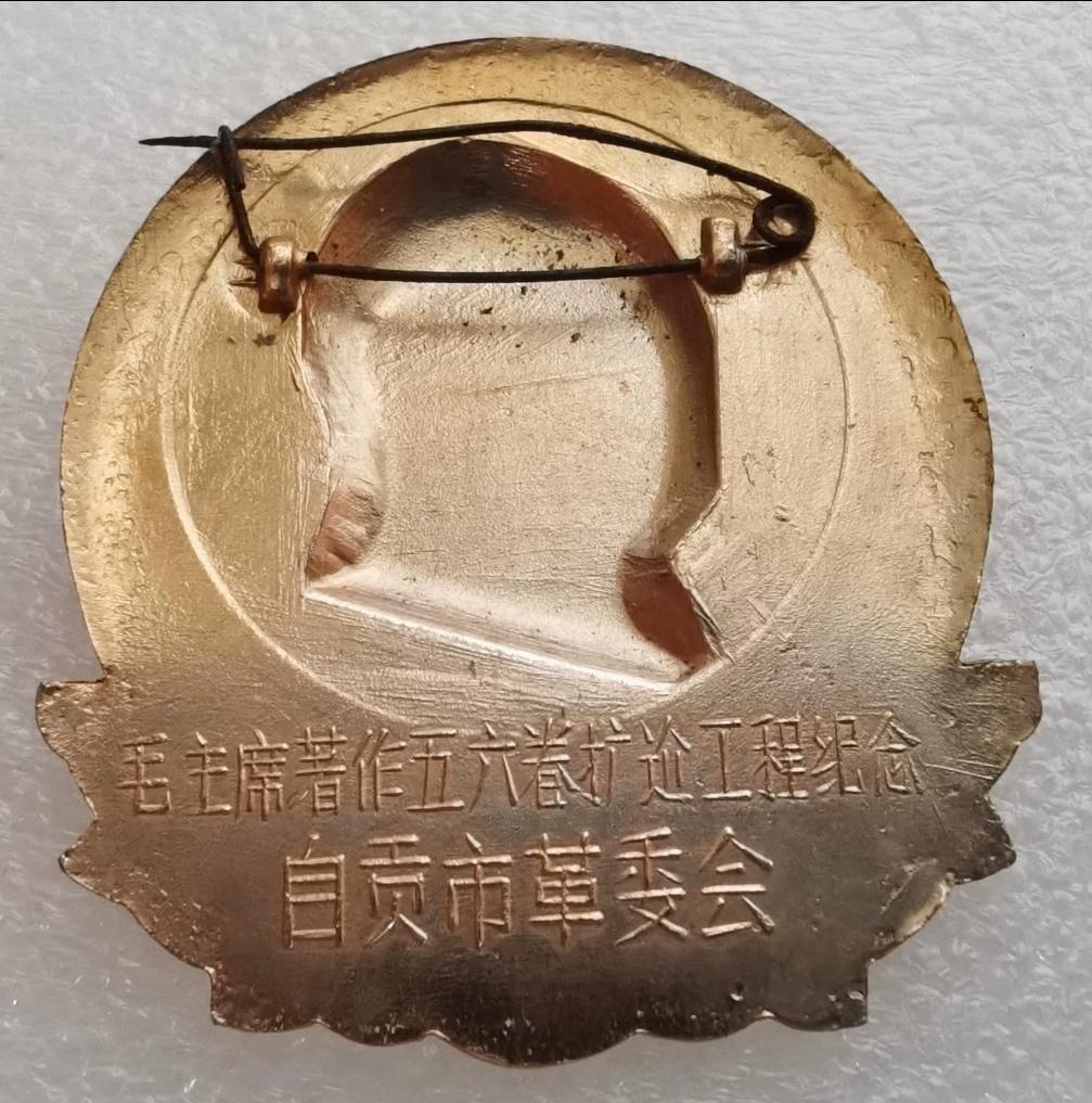 #红色文化# 毛主席像章欣赏: 《认真作好生活工作【毛主席著作五六卷扩建工程纪念·自贡市革委会】》