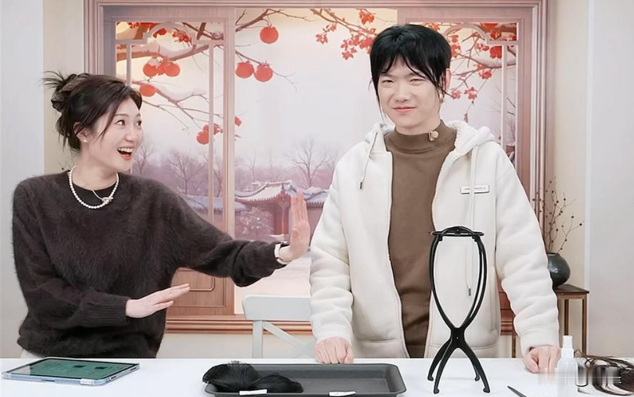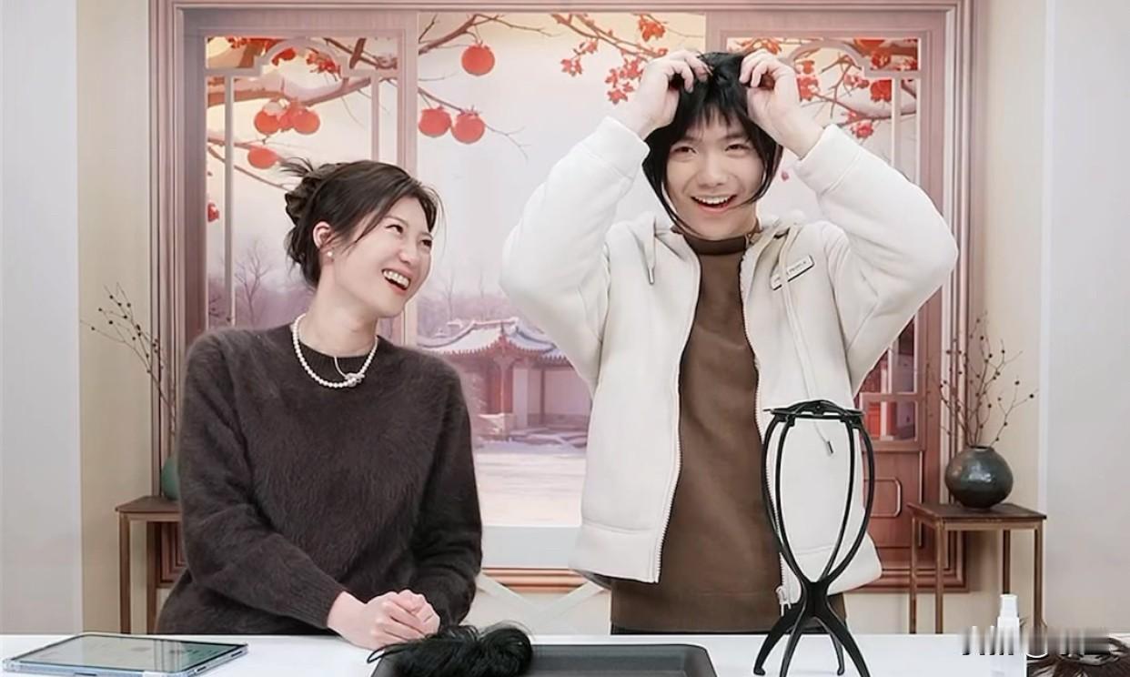 盼盼扭头看了一眼传熙 然后默默闭上了眼睛 网友:怎么了盼盼?辣眼睛了[笑哭] 今年夏天他们就卖过一次假刘海儿 当时是董董、传熙和宋宋戴 把直播间的观众逗得满地找头[捂脸] 今天传熙又戴着搞怪 把他盼姐逗的都看不见眼睛了[偷笑] 盼盼表示不忍直视[大笑] 主要是传熙特别自信 一直用手轻捋着假发丝 表情也特别自如 一副沉浸在自己盛世美颜中的样子 把盼盼油到了 连传熙夸盼盼戴着假发优雅 盼盼都听成了传熙在夸他自己 还一脸震惊的看着传熙 传熙赶紧解释在夸她[偷笑] 实在太欢乐了 没想到他俩双播竟然有这喜剧效果 传熙说自己是专业的(学表演的) 很容易沉浸在自己的角色中 行,你帅你说啥都对[笑哭] 不过盼盼戴假刘海儿挺漂亮的 如果不是传熙总逗她 看上去其实挺温柔[耶]