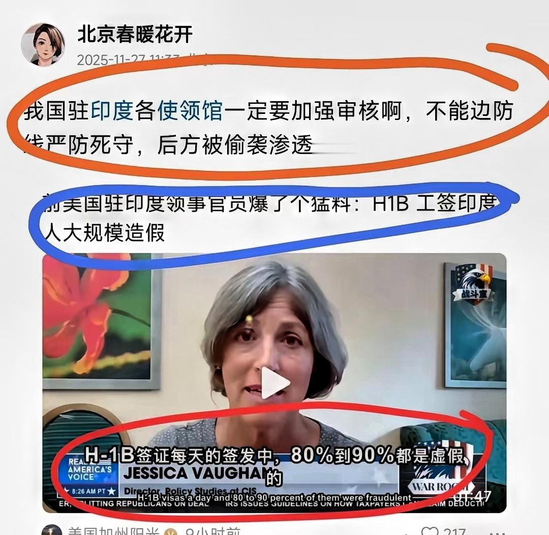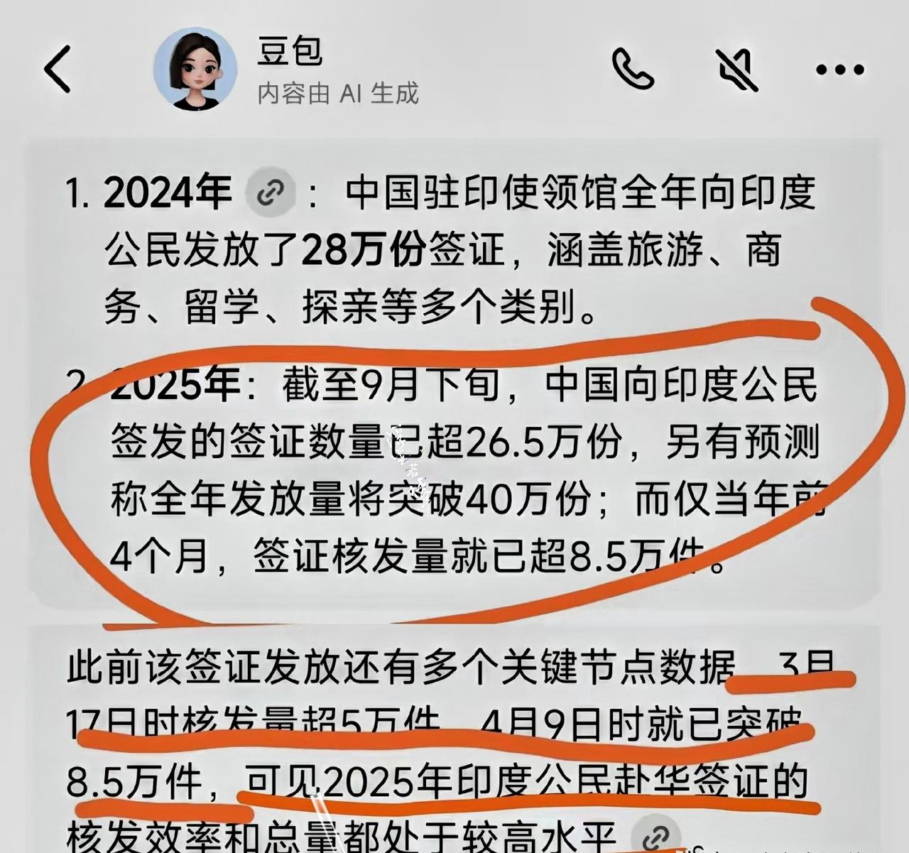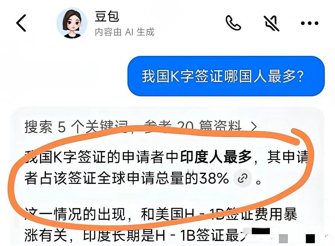 果不其然被广大网友们说中了,所有K字签证中,印度人占比高达38%!另外,今年我国驻印度各使领馆对印度公民签发的签证数量大幅上升,3月17日核发量超5万件,4月9日就突破8.5万件,而到了9月下旬已经达到26.5万件。 美国前领事官员都实锤,印度人H - 1B工签80 - 90%都是造假,伪造学历文件是家常便饭,还有新西兰的驾照造假、加拿大的各类乱象,全是前车之鉴。更别提在国内,高铁上把臭脚丫搁小桌板,上海深圳地铁里吃手抓咖喱饭,外滩直接支桌子坐地上,这还是有条件出国的“高素质”人群?开放交流不是没底线妥协,咱们东中西线边防军人在冰天雪地里守着疆土,不是让某些人来破坏咱们的生活秩序的。别等乱象蔓延才醒悟,把关严一点,既是护着咱们的生活环境,也是对真正友好交流的尊重。