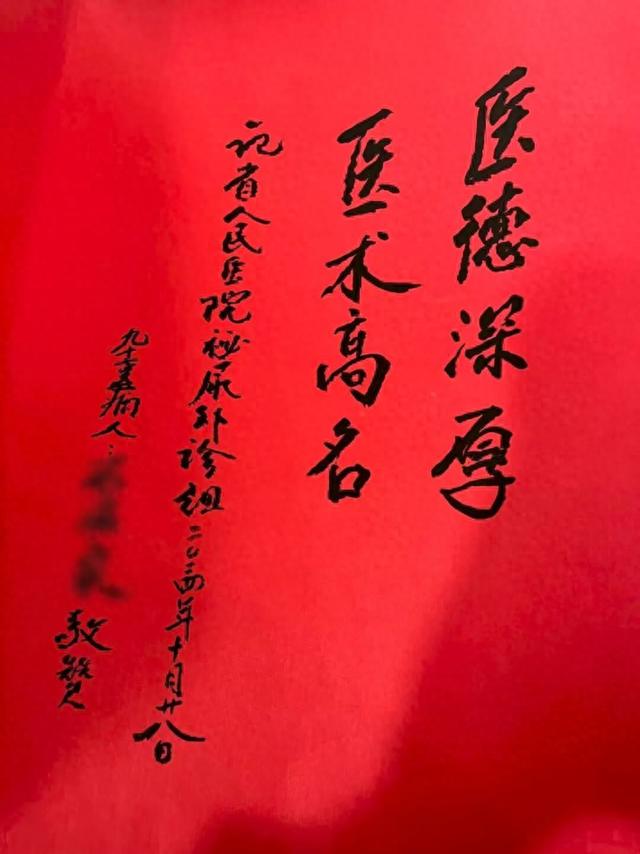 本以为这次上门服务已画上圆满句号。然而,次月当李甜再次应约上门为老人更换尿管时,老人的女儿郑重地拿出了一张红色硬纸板。纸上,是老人用颤抖却极为认真的笔迹写下的简短谢辞。“爷爷怕打扰您工作,没打电话问您的具体信息,但他一直记挂着,非要亲手写下这份心意。”家属解释道。