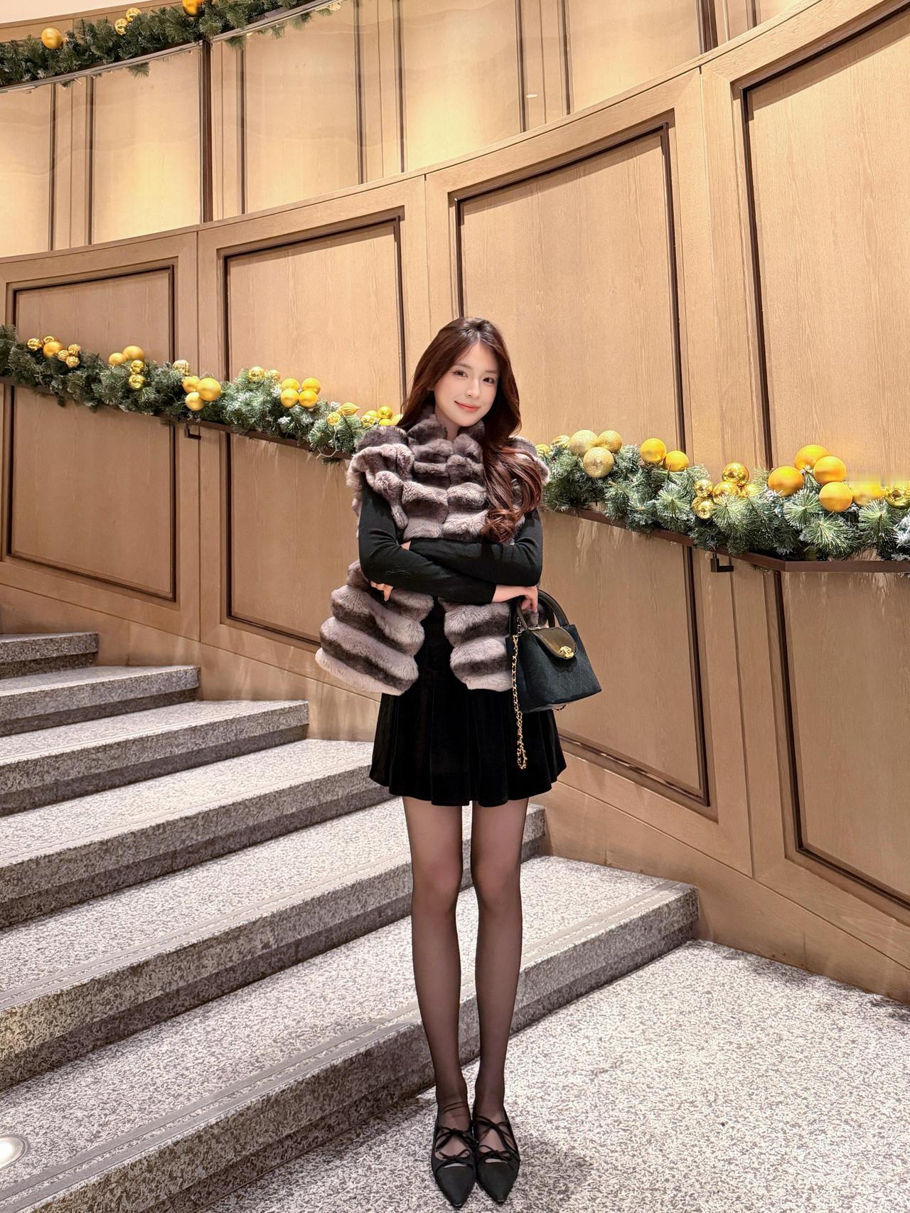 闺蜜说我穿得像有钱人家的小女儿… 今天的贵气是龙猫皮草给的 马甲配丝绒裙不要太嗲
