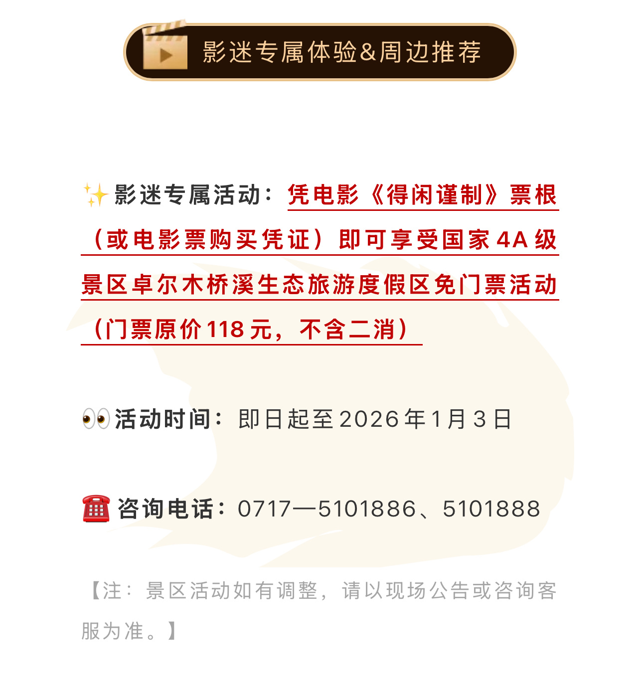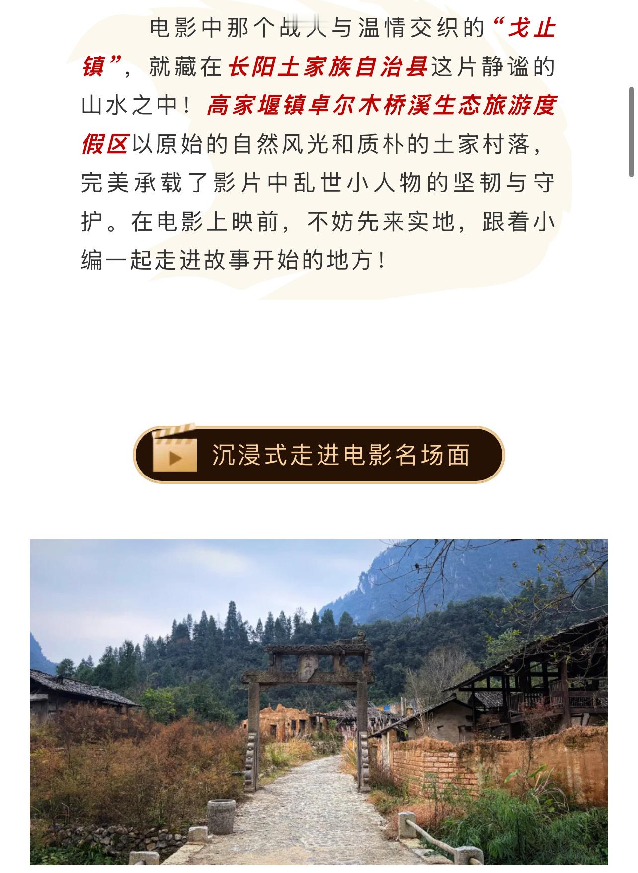 宜昌长阳文旅发布的肖战电影《得闲谨制》拍摄打卡地,戈止镇置景真的超级用心啊!影迷们凭借电影票梗或者购票证明,可以免门票打卡(不含二次消费!)