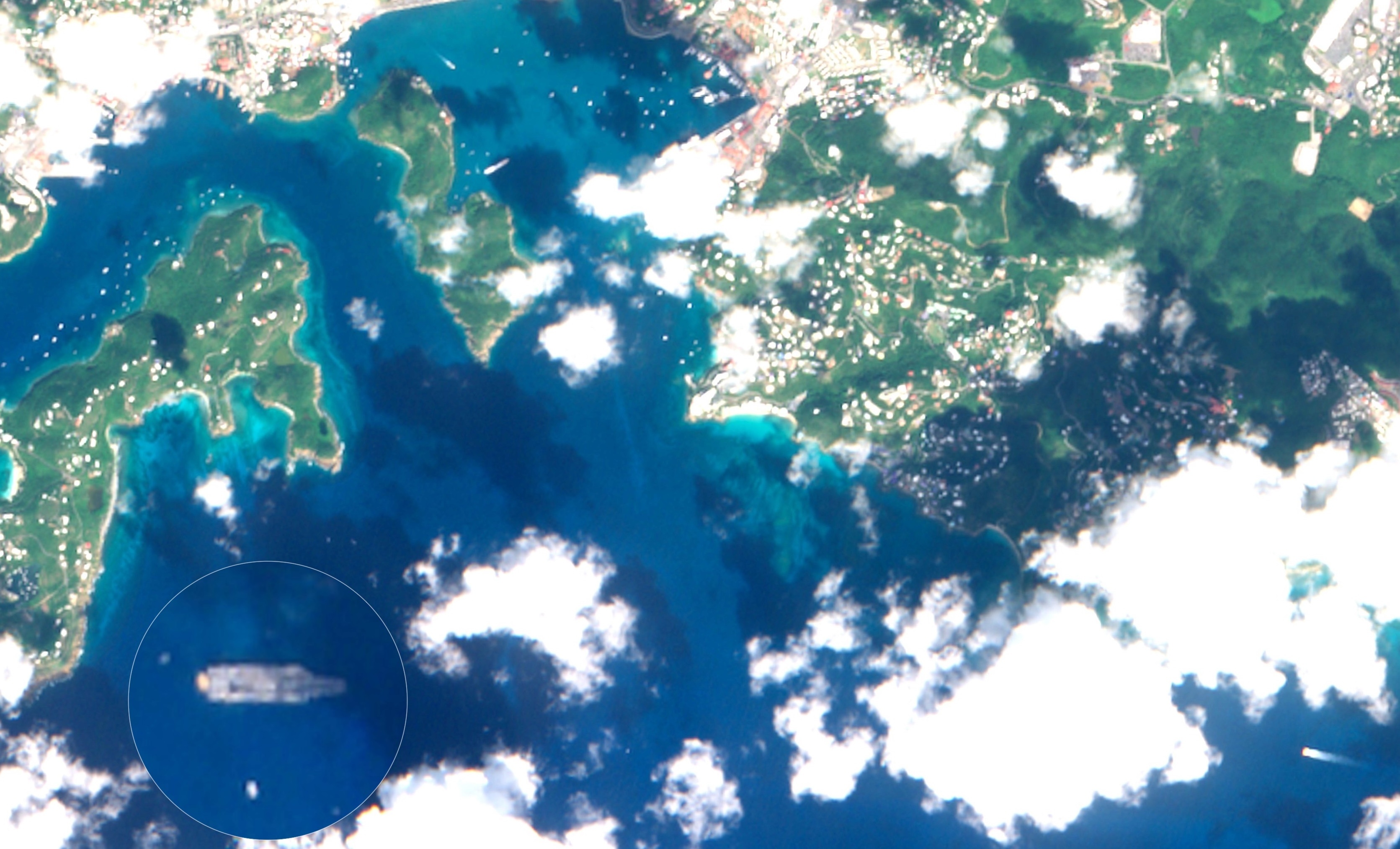 2025年12月1日,美国海军新一代福特级航母首舰”杰拉尔德·R·福特“号(USS Gerald R.Ford,CVN-78)在美属维尔京群岛(USVI)的圣托马斯岛的游轮码头附近停泊。
