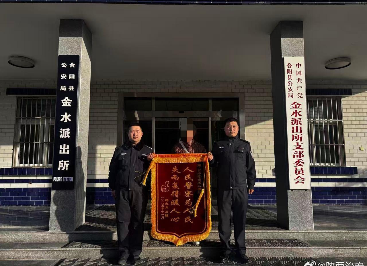 【暖心寻人护平安 锦旗致谢显温情】12月1日,辖区群众杨女士及家属专程来到渭南合阳金水派出所,将一面饱含感激之情的锦旗亲手送到民警手中,以真挚的谢意感谢民警全力搜寻,成功找回其走失的80余岁老父亲,彰显了警民之间的深厚情谊。