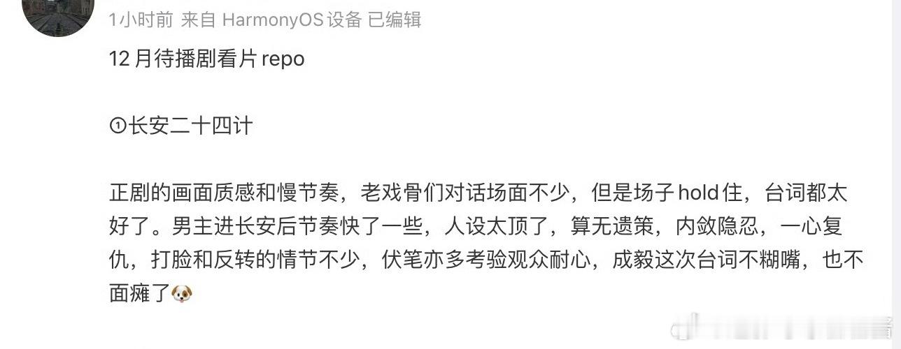 虞书欣何与《双轨》,成毅《长安二十四计》看片repo业内都比较看好,双轨cp感很足,爱恨交织长安二十四计成毅台词不含糊了,前期节奏比较慢,后期就加快了