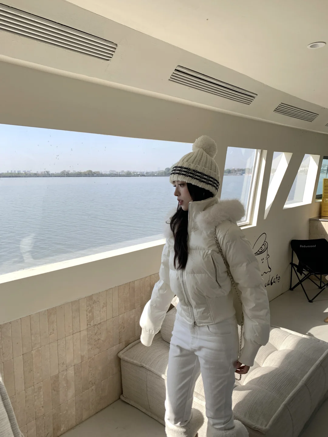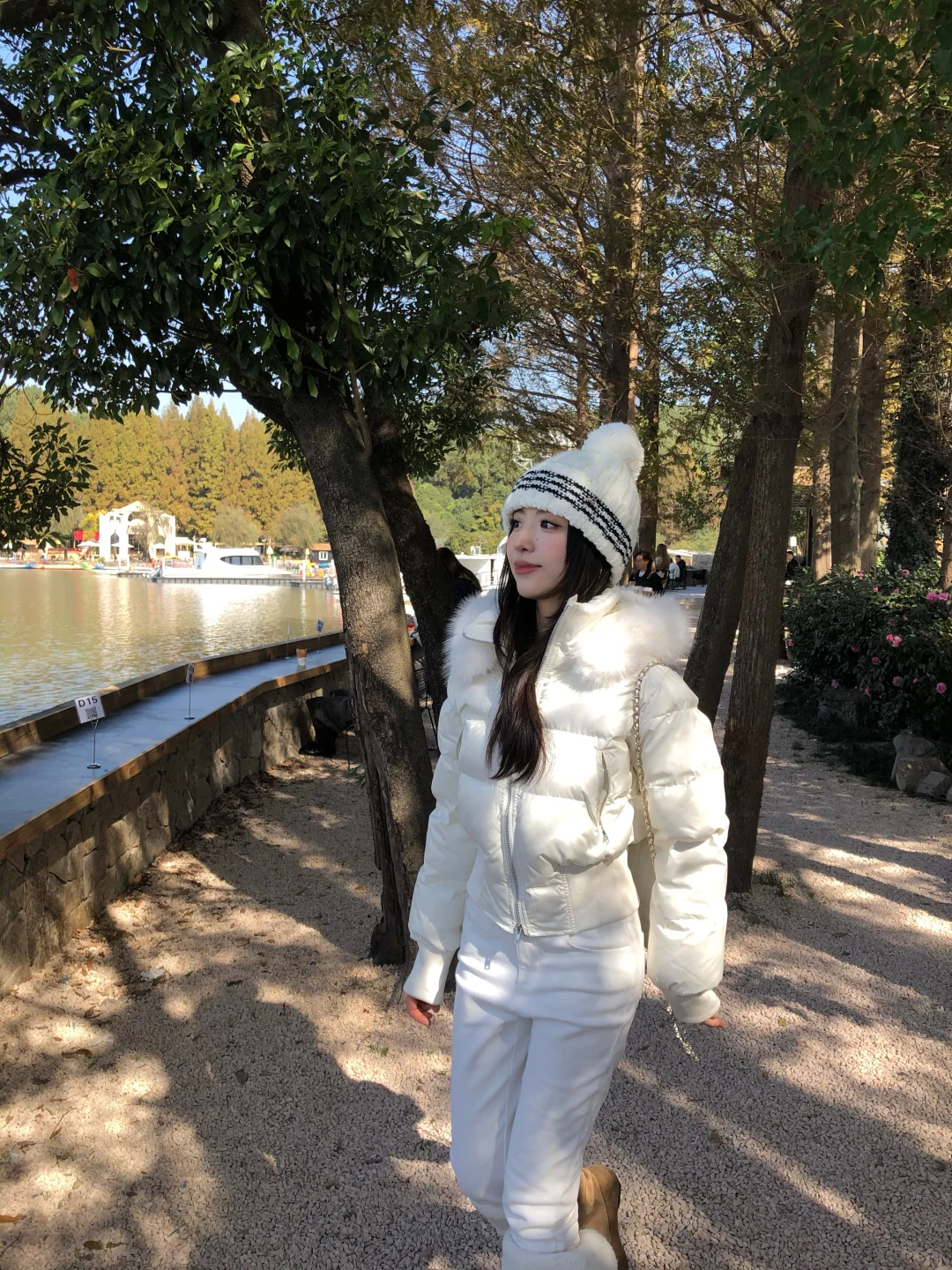 抓住初冬好天气🛹 奶呼呼的掐腰羽绒 很有古早感