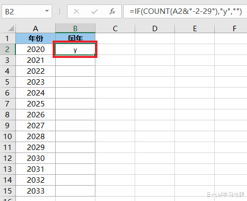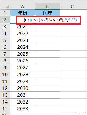 将 A2 的年份与 "-2-29" 相连,如果是闰年就变成日期格式,不是闰年则会被当成文本处理;