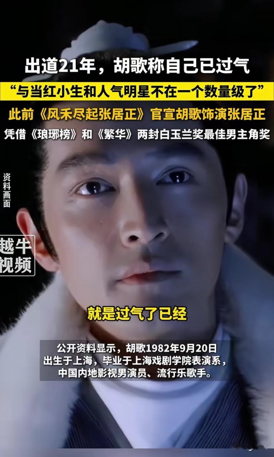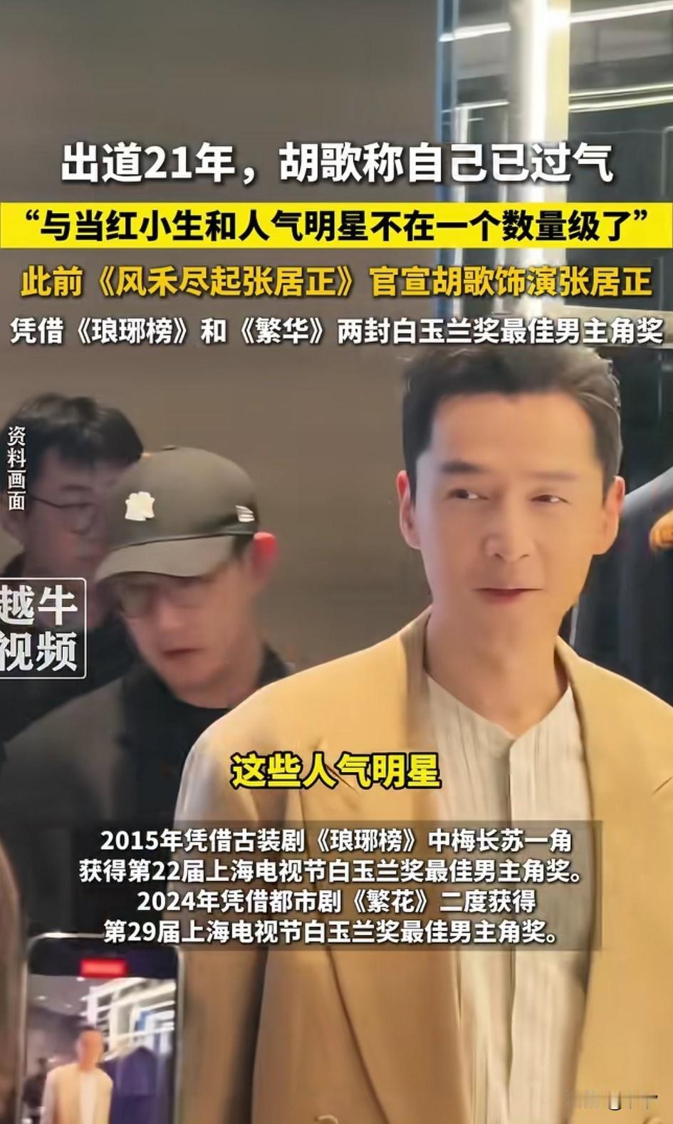 出道21年,胡歌表示自己已经过气, 可以胡歌是古偶电视剧的天花板, 15年的《琅琊榜》是真的出彩, 24年的《繁花》让他二度获得上海电视节白玉兰奖最佳男演员, 记得最早看胡歌的剧应该是《仙剑奇侠传》的李逍遥, 时间过得真快, 胡歌都表示自己也过气了, 和流量明星以及小鲜肉不是一个等级的,虽说如此, 每一次胡歌主演的电视剧, 都是爆款剧, 这就说明他的人气很高, 尽管他已经结婚生子, 但是他演的电视剧就是好看! 大家觉得胡歌过气了吗? 胡歌 胡歌,唐嫣 胡歌之繁花 胡歌情感语录 宝总胡歌