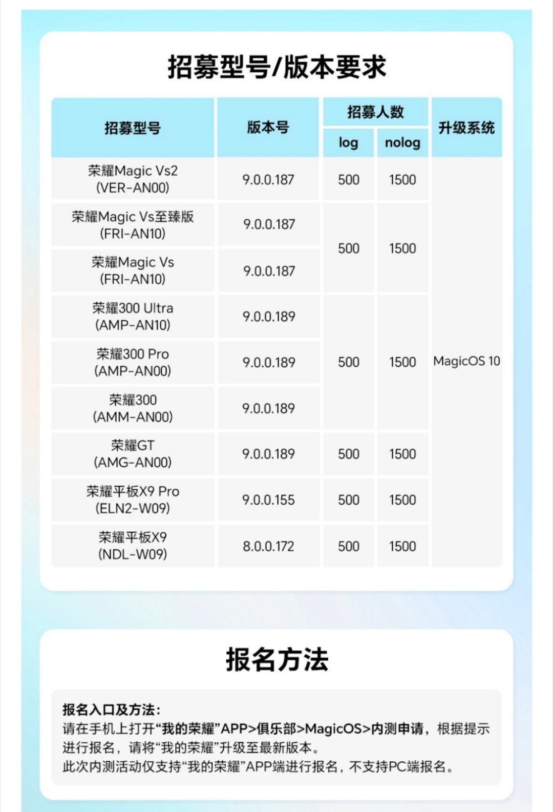 今天看到第五批还可以申请快看看你的型号可以么这样就不用等到明年啦MagicOS10 报名方法在图3️⃣
