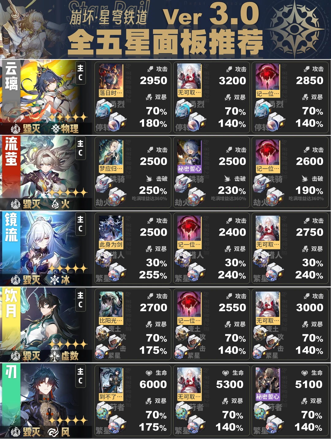 ⑤输出角色遗器副词条取20个双暴词条+6个其他有效词条
