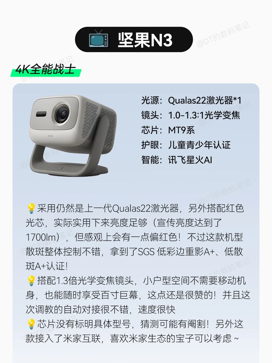 嗨~我是DT 是不是还有宝子在纠结投影仪咋选? 今天分享几款4K左右价格的投影仪,也是卧室投影热门价位,实在不知道如何选择的宝子直接抄作业 投影仪家用投影仪投影仪推荐4K投影仪激光投影仪Vidda投影仪ViddaM2Pro坚果N3小米激光投影仪海信此刻是我