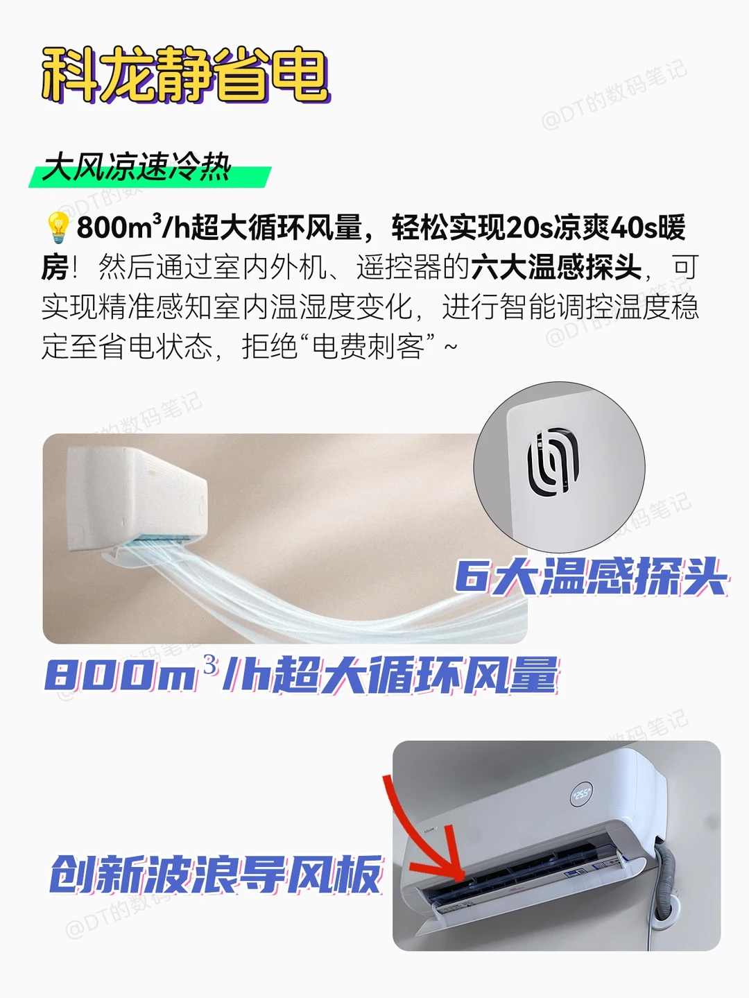 ✅800m³/h超大循环风量,轻松实现20s凉爽40s暖房!然后通过室内外机、遥控器的六大温感探头,可实现精准感知室内温湿度变化,进行智能调控温度稳定至省电状态,一切技术都是为了省电~