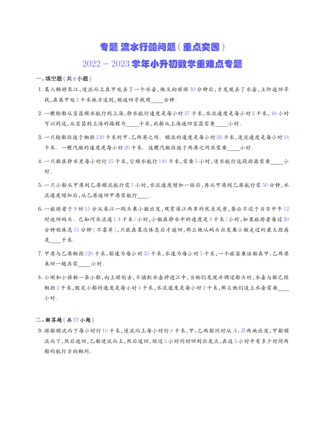🚢顺水速度和逆水速度分别指顺流航行时和逆流航行时船在单位时间里所行的路程。
