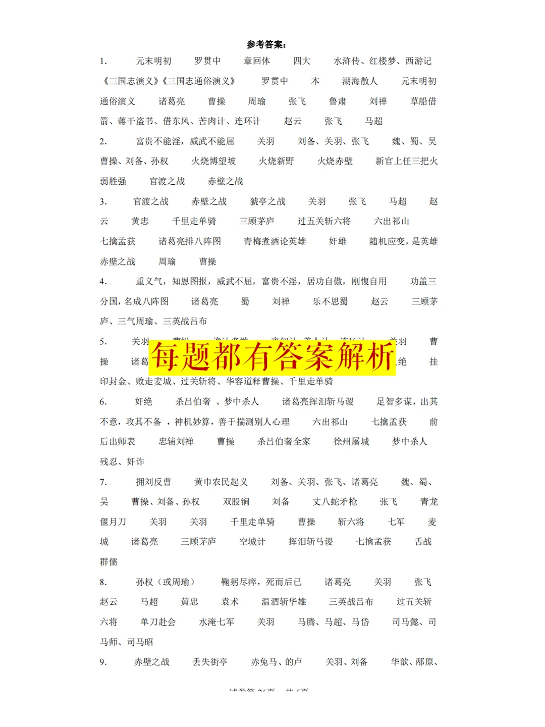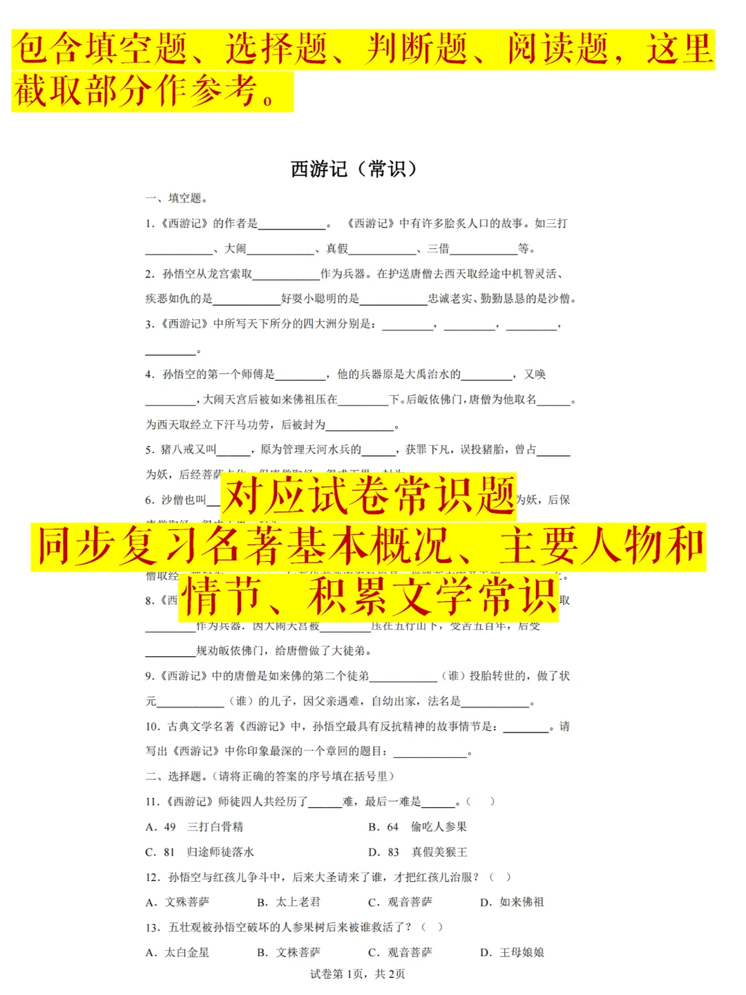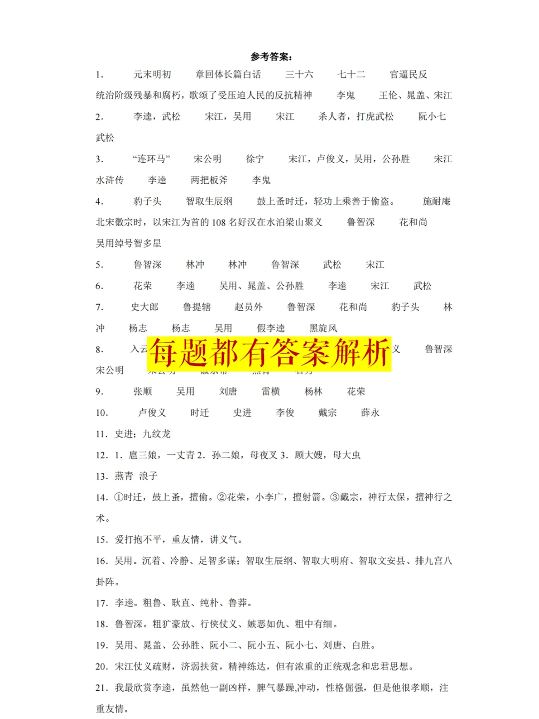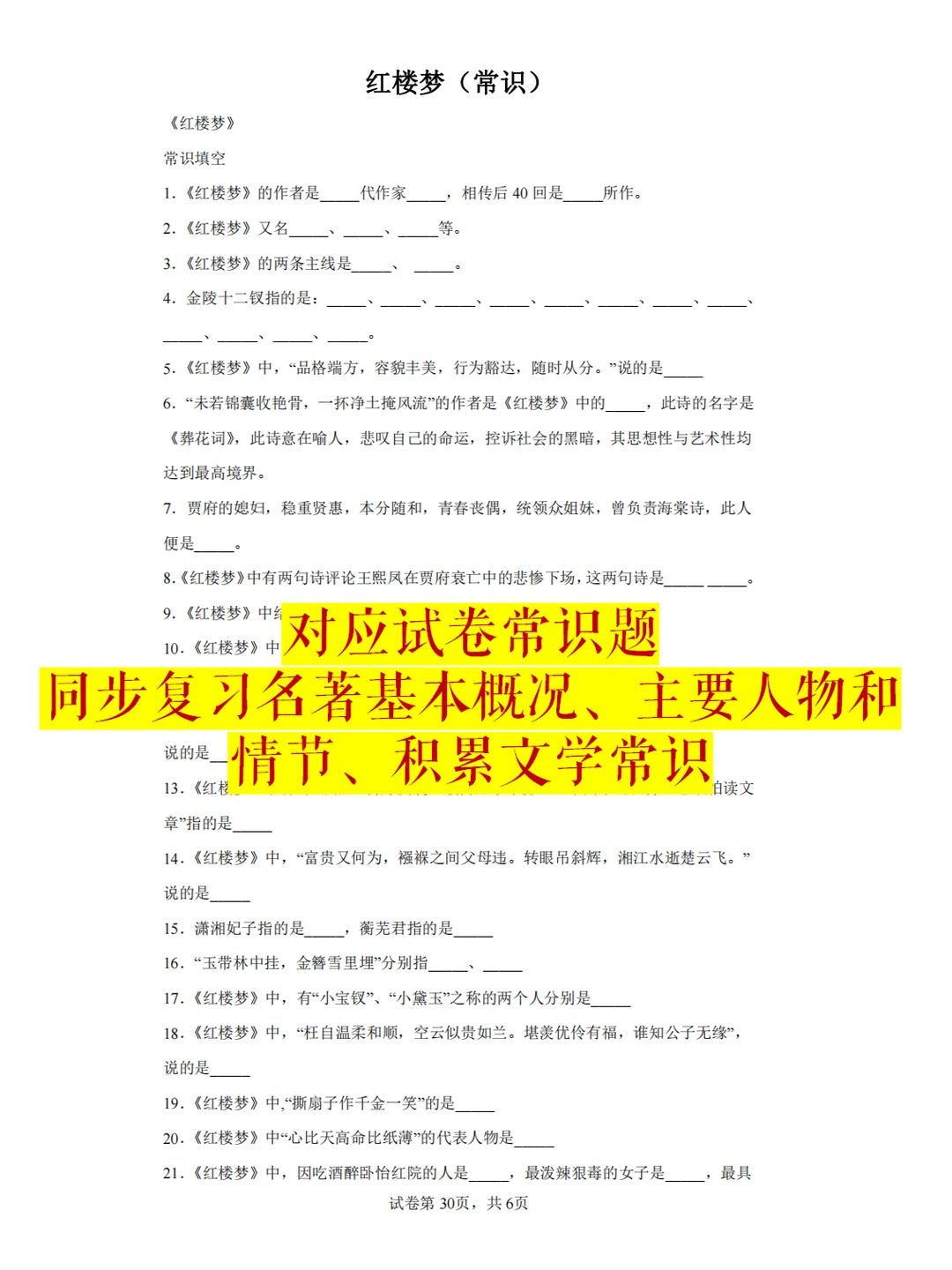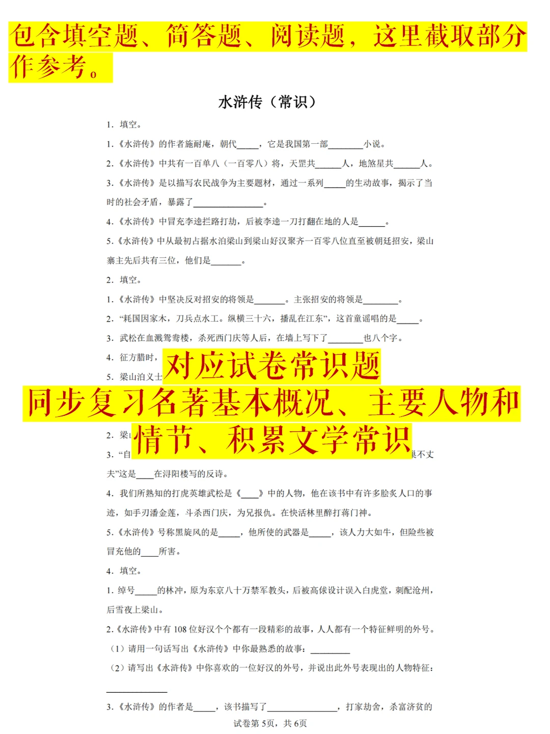 资料内容:四大名著知识点填空+8套高频考题18个原文文段,62页。