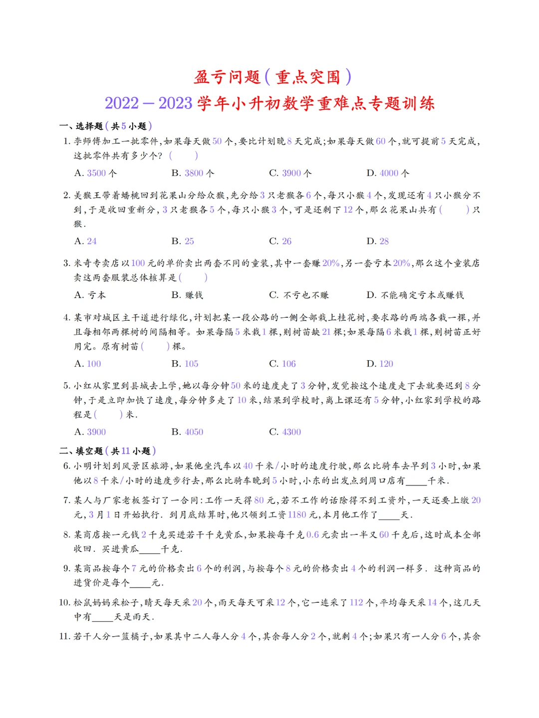 1️⃣(盈数+亏数)÷两次每份分配之差=份数