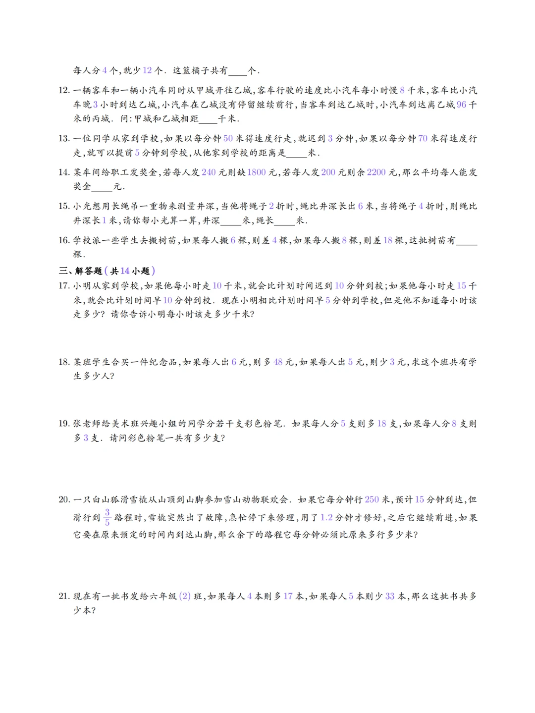 🌈像这种,由于两次每人出资金额不同导致最后有盈余或亏欠的问题通常称为盈亏问题。现实生活中的盈亏问题的例子还有排座位,分寝室等。