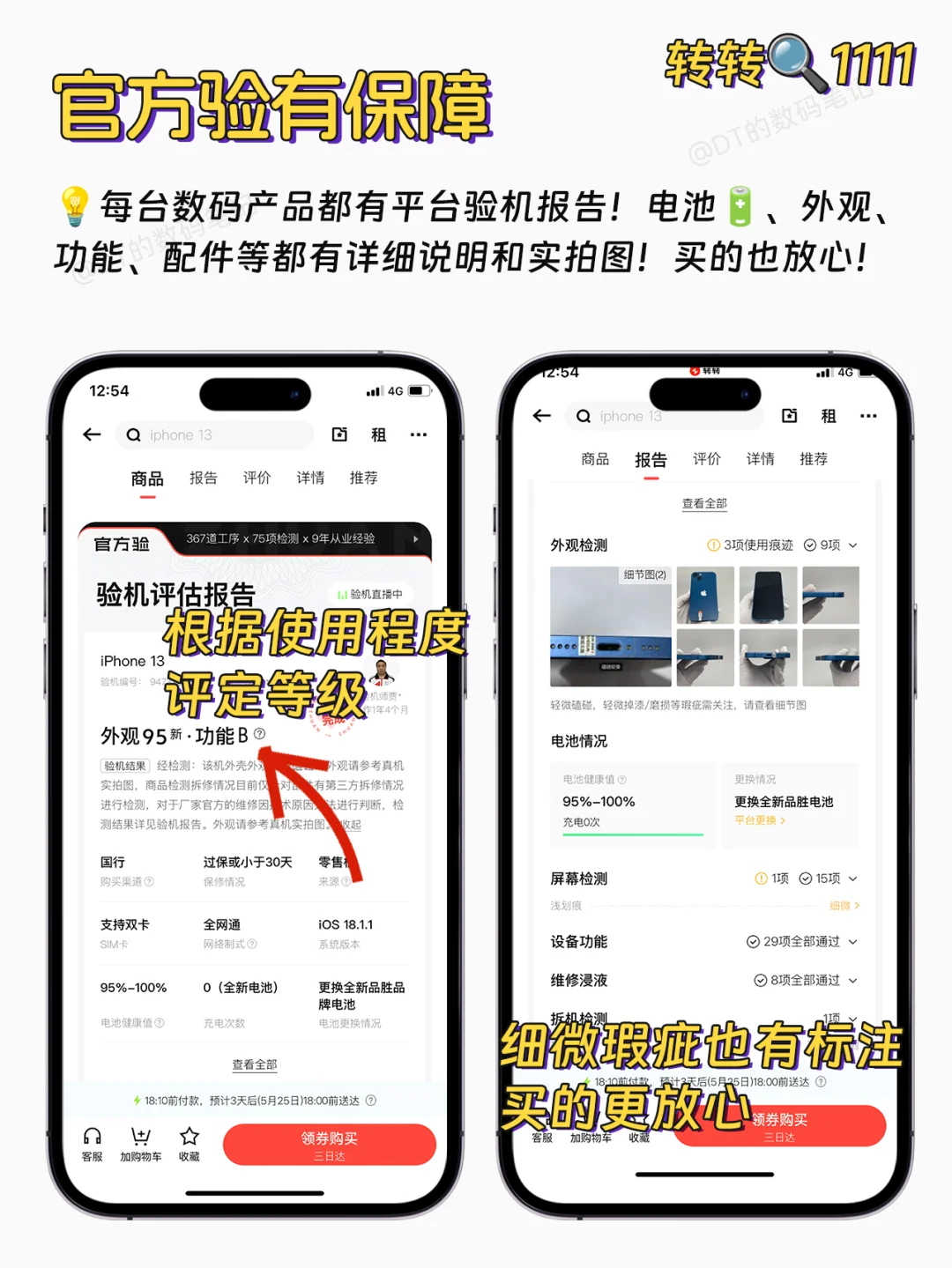 [一R]转转:适合新手,✔每台都有官方验机报告,细到电池、电压、电流都写得清清楚楚,关键还有 7天无理由退货 + 1年质保,真·省心