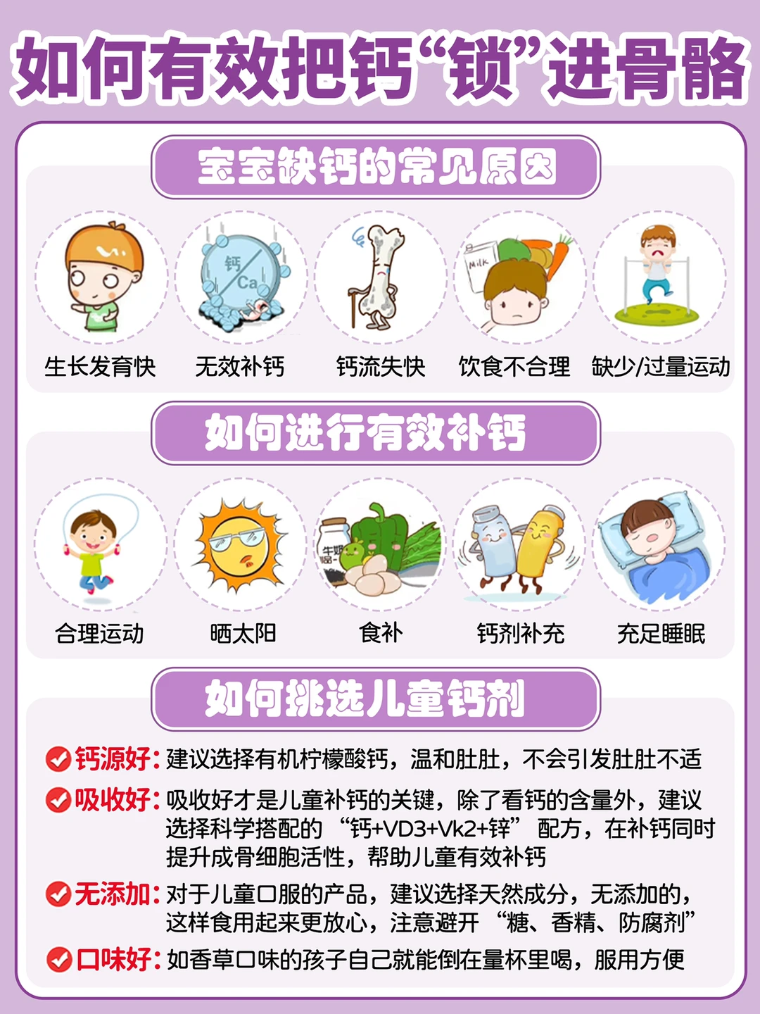 由于我家娃以前缺钙,所以我们家补钙是下了大功夫的!🙋🏻♀️娃缺钙的原因有很多:长的太快、饮食不合理、缺少运动等等都可能会缺钙,我们家平时除了运动+食补+良好的作息习惯,除此之外就是单独补充钙剂~