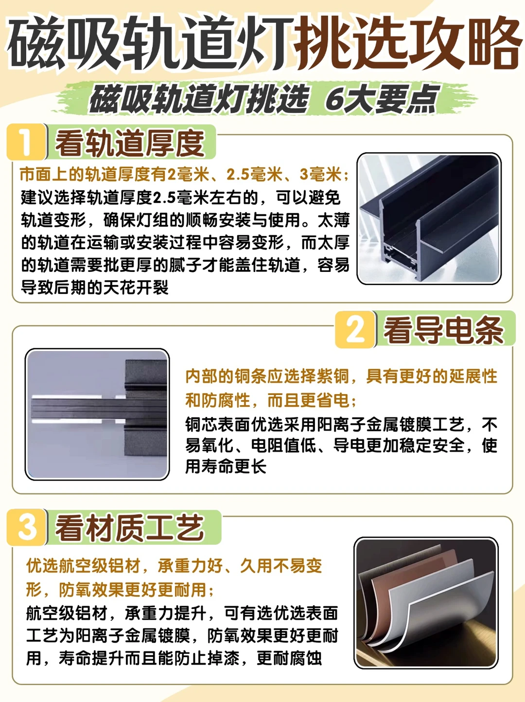 💡磁吸轨道灯选不好经常会出现以下几种情况,例如灯光昏暗、灯光频闪、轨道变形等多种问题🧐🧐今天带大家了解一下磁吸轨道灯在选择和安装时应避免的坑和选购要点⁉️