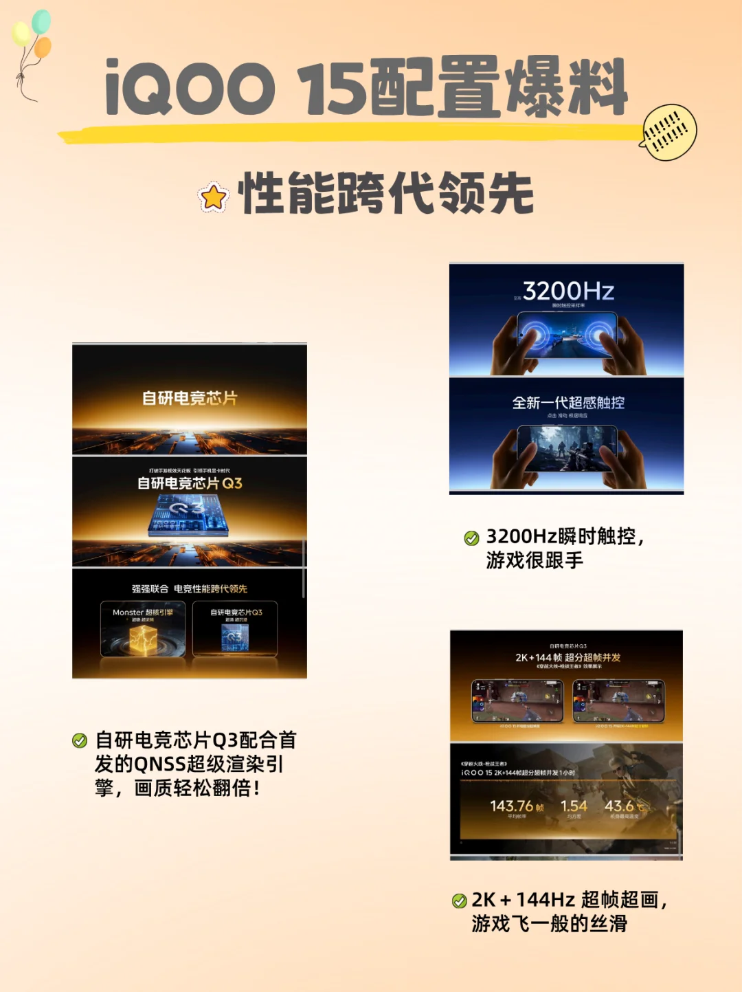 今天下午看了iQOO 15的技术沟通会,真的忍不住想来唠一唠🤨🤨,这次「超分超帧」和「2K三星珠峰屏」到底有多强?尤其是那颗自研电竞芯片Q3[暗中观察R][暗中观察R],直接让手游画质和流畅度起飞🛫!