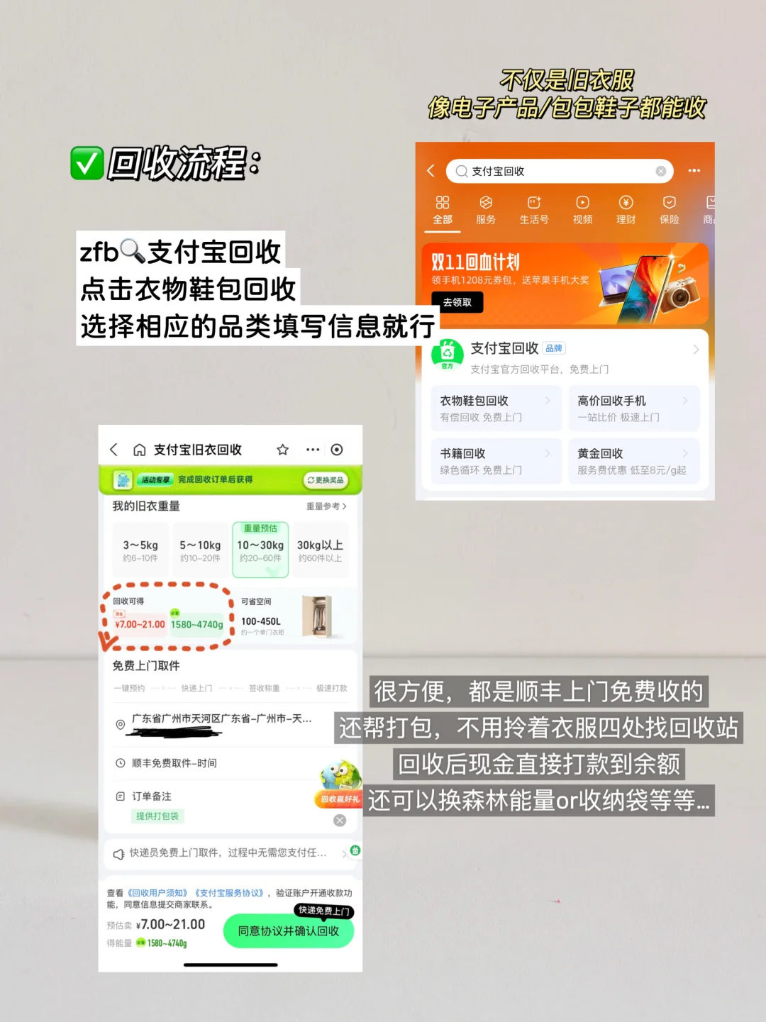 家里闲置,穿不上的衣服我都会拿去zfb回收