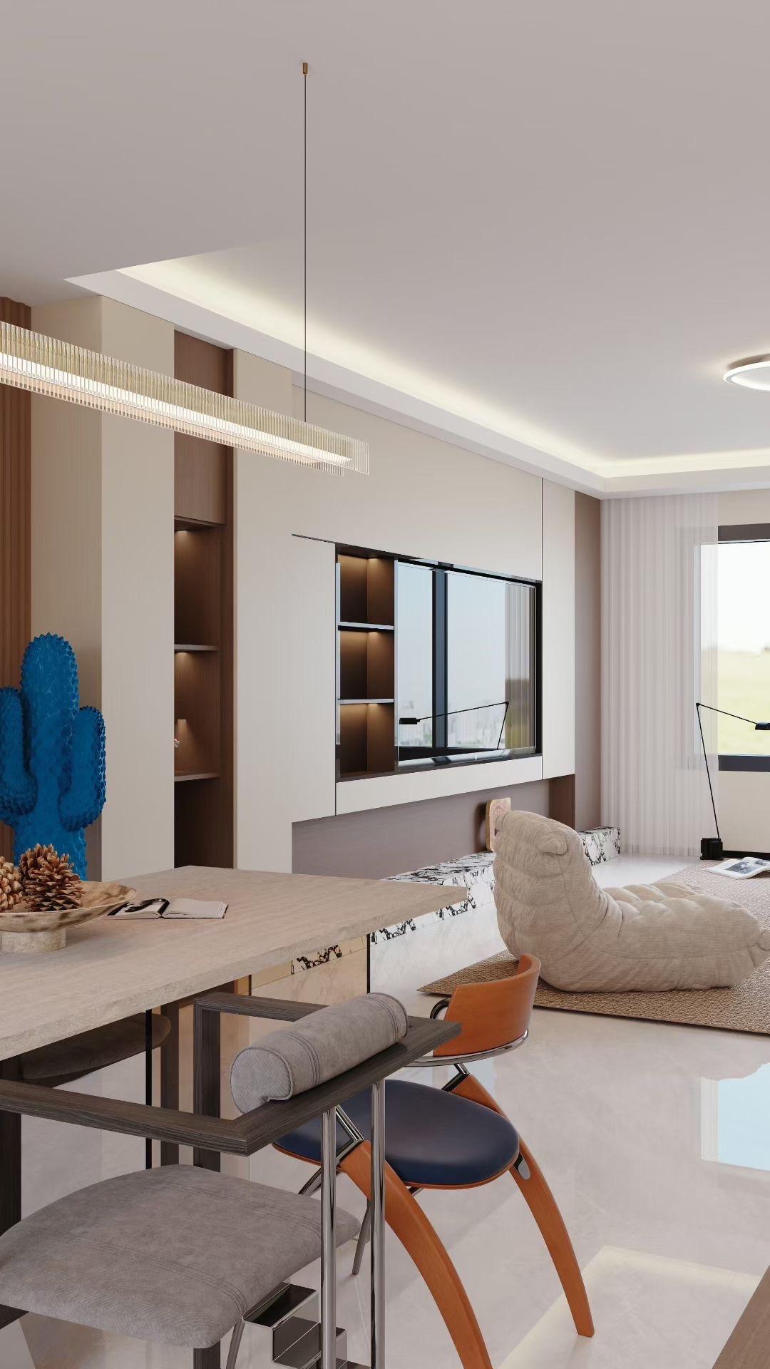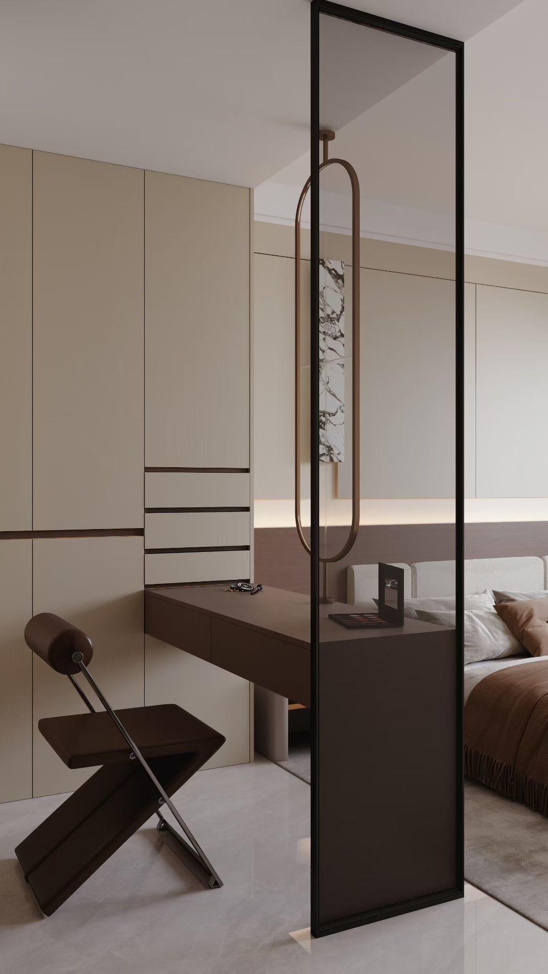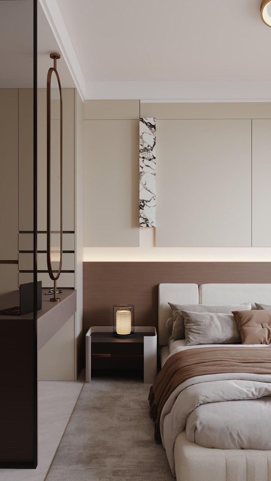 现代简约风。大家好,我是设计师曹波 🙌今天给大家分享一组现代简约风👀的装修案例 🖼️客餐厅:浅棕木饰面+米白基底做底色,黑胶唱片墙、蓝色仙人掌摆件是年轻态的趣味注脚;弧形落地灯的线条柔化了空间棱角,岩板餐桌与皮质沙发的材质碰撞,让松弛感和精致度刚好平衡~ 🛋️休闲区:“云朵”单人椅+嵌入式灯光柜,把“宅家放空”的舒适感拉满;大理石纹理的局部点缀,又悄悄提升了空间的高级调性。 🛏️卧室:同色系的柔和铺陈,搭配悬浮床头柜、金属线条镜,在静谧氛围里藏着细腻的设计巧思,连灯光都是温温柔柔的~