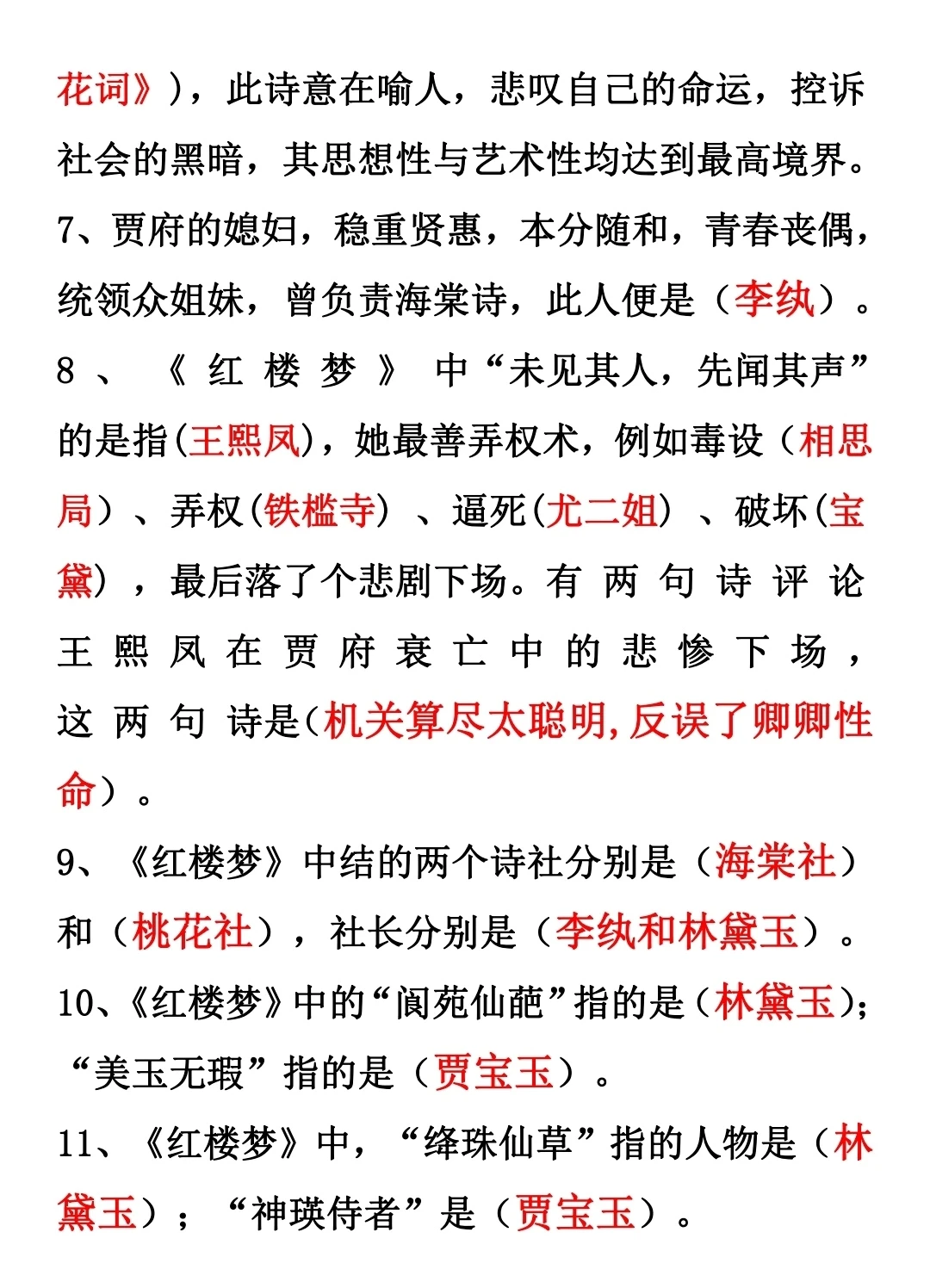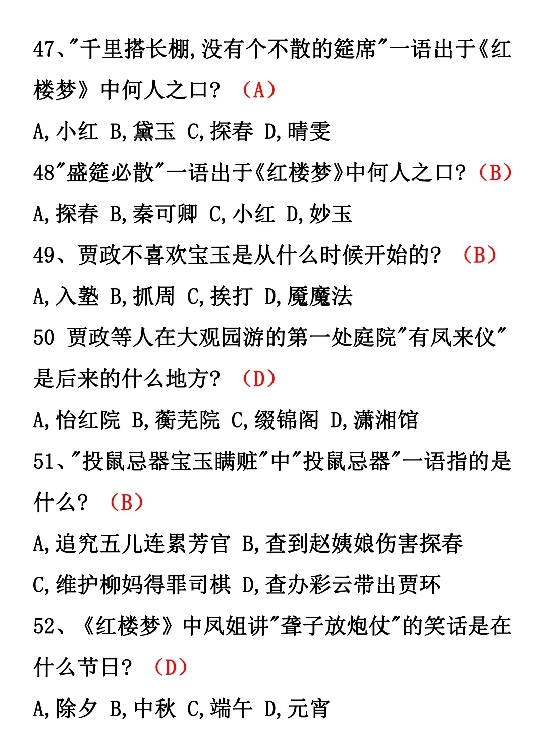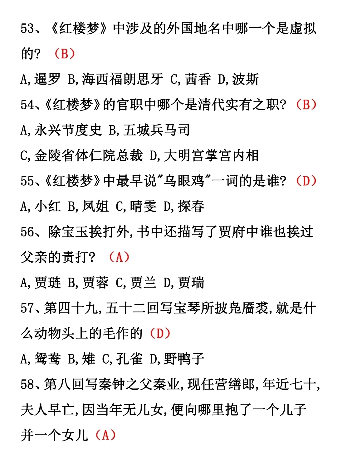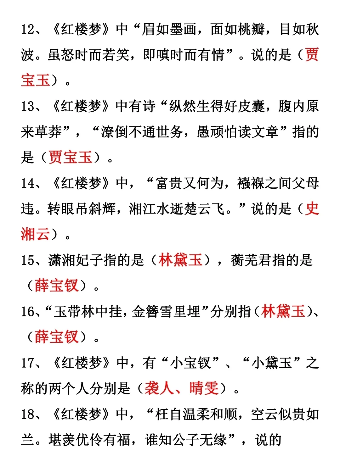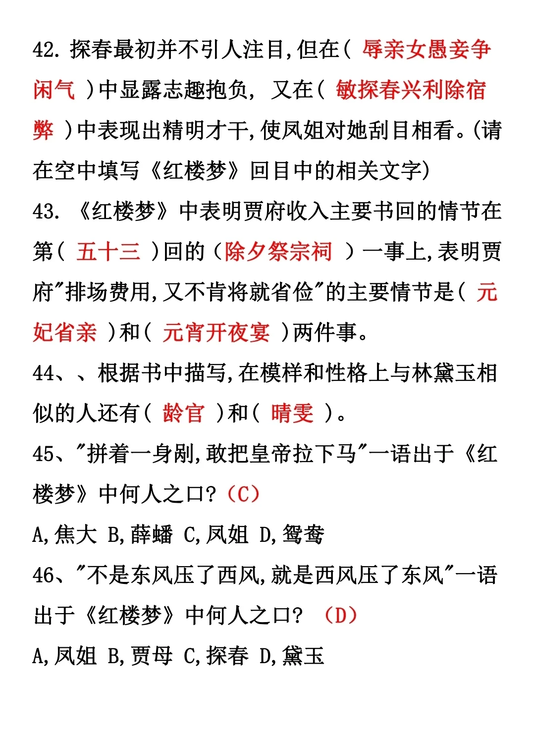 下班后宁静的夜晚 《红楼梦》考过的题挺多的。