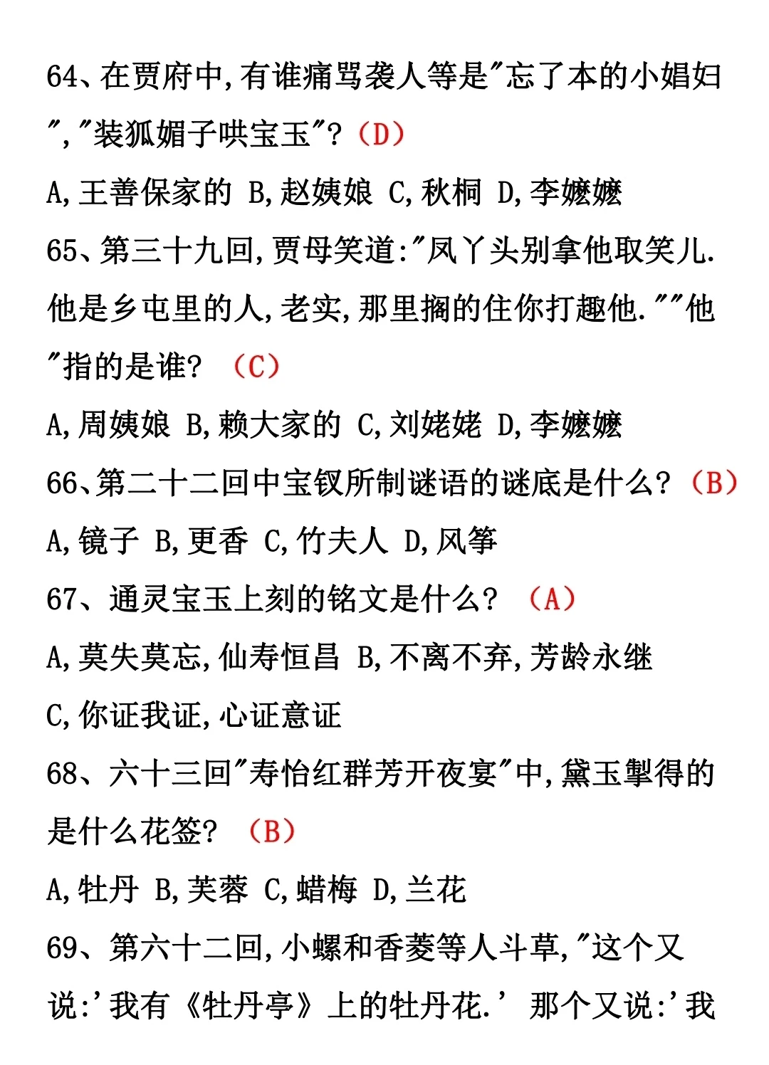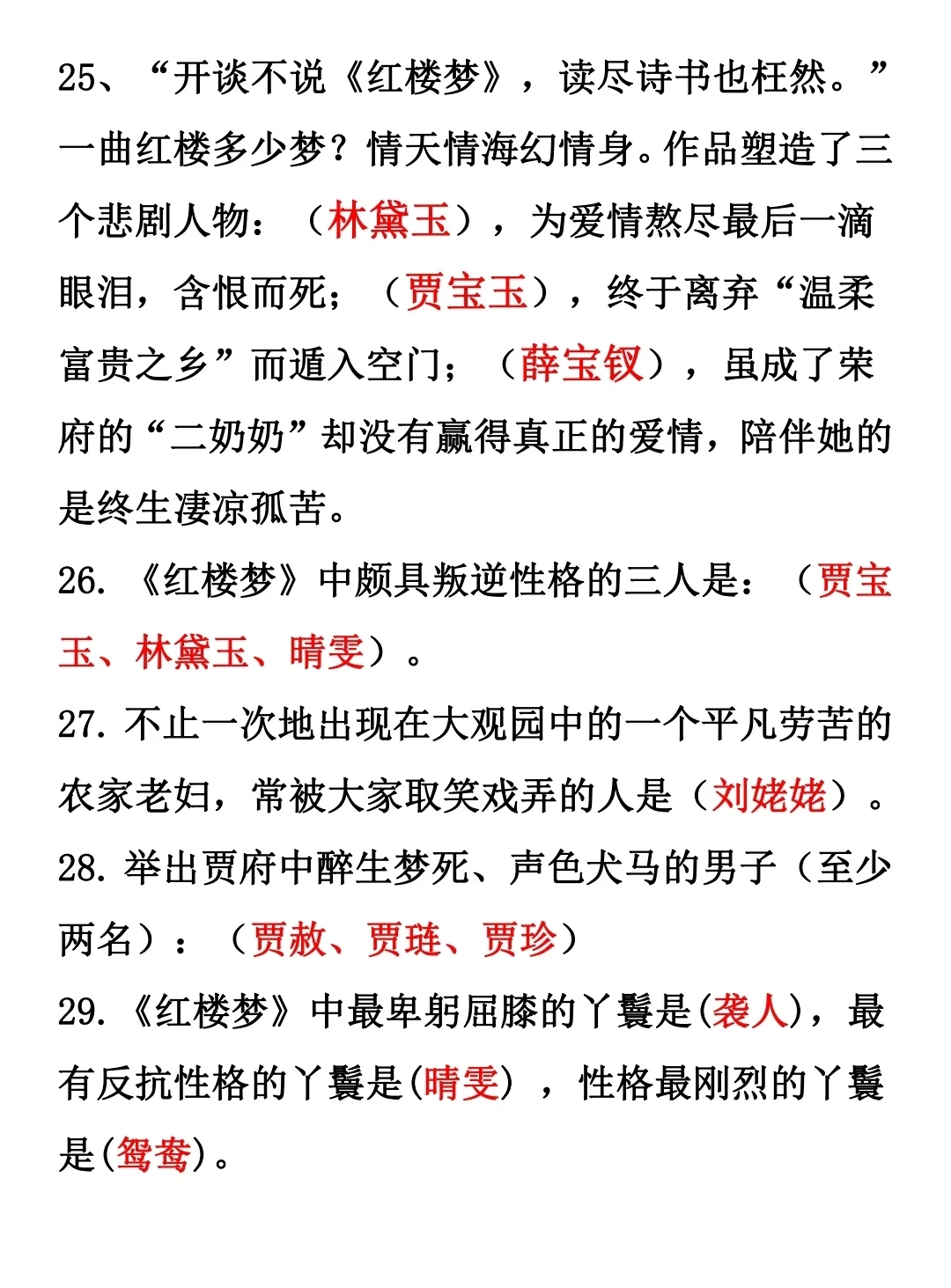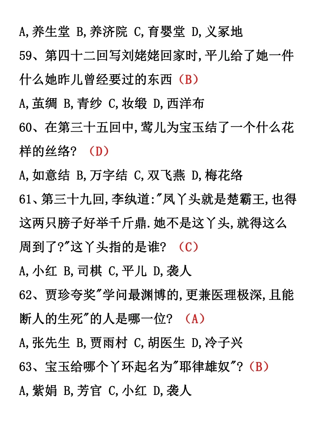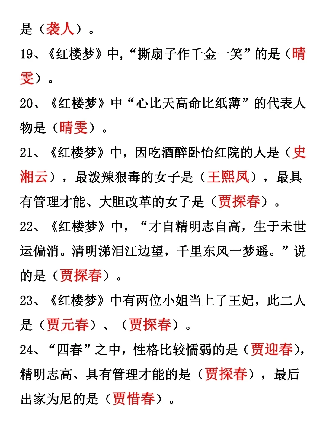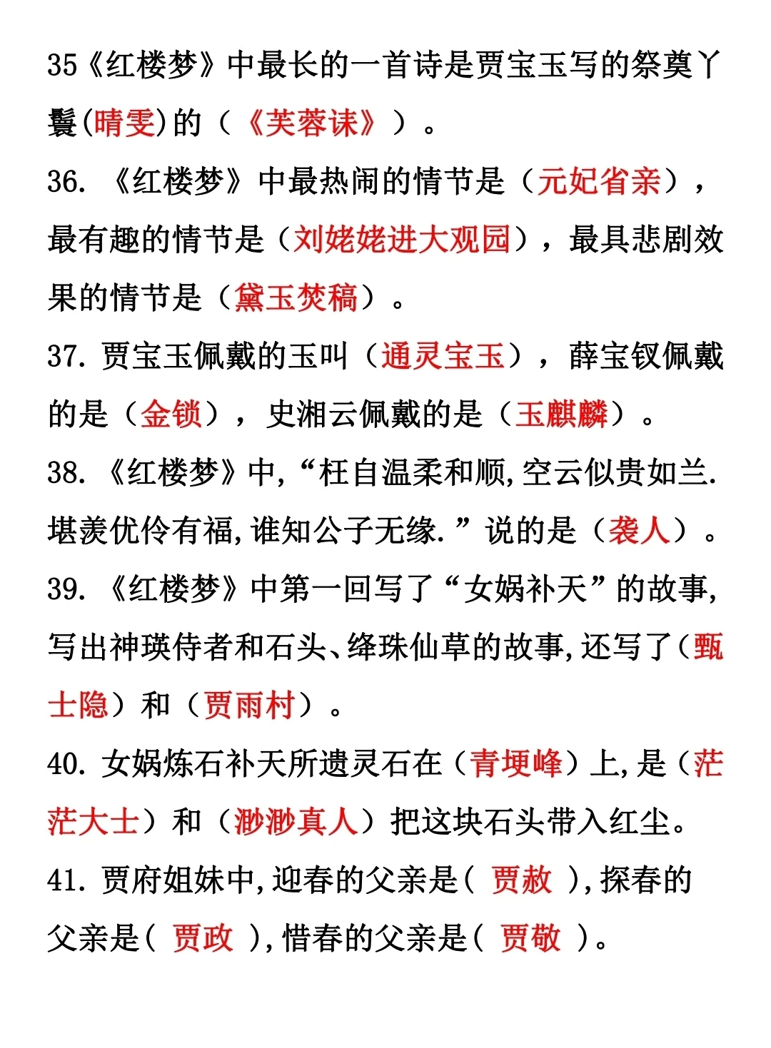下班后宁静的夜晚 《红楼梦》考过的题挺多的。