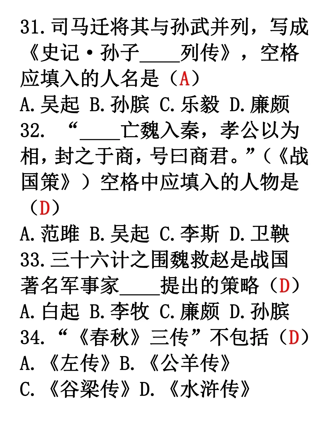 文学常识题目整理(二)带答案