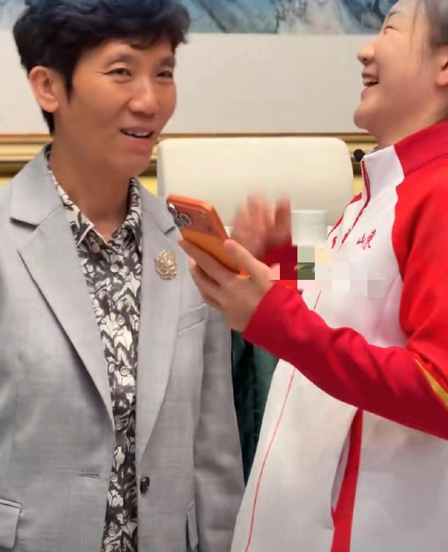 陈梦参加山东全运会表彰大会,与干妈乔云萍合影! 陈梦回山东参加表彰大会,又见到自己的恩师兼干妈乔云萍了! 可别小看这位皮肤黝黑、有点女生男相的“小老太太”,她可是陈梦这辈子最大的恩人! 巴黎奥运会期间担任山东体育橘橘长、中国奥组委委员,帮陈梦鞍前马后,处理巴黎奥运会前前后后各项事宜。 没有她的加持,陈梦也不会那么顺利帮“干妈”拿下两块奥运金牌,而这两块金牌也是陈梦对“干妈”的回报! 这才叫伯乐与千里马的双向成就!