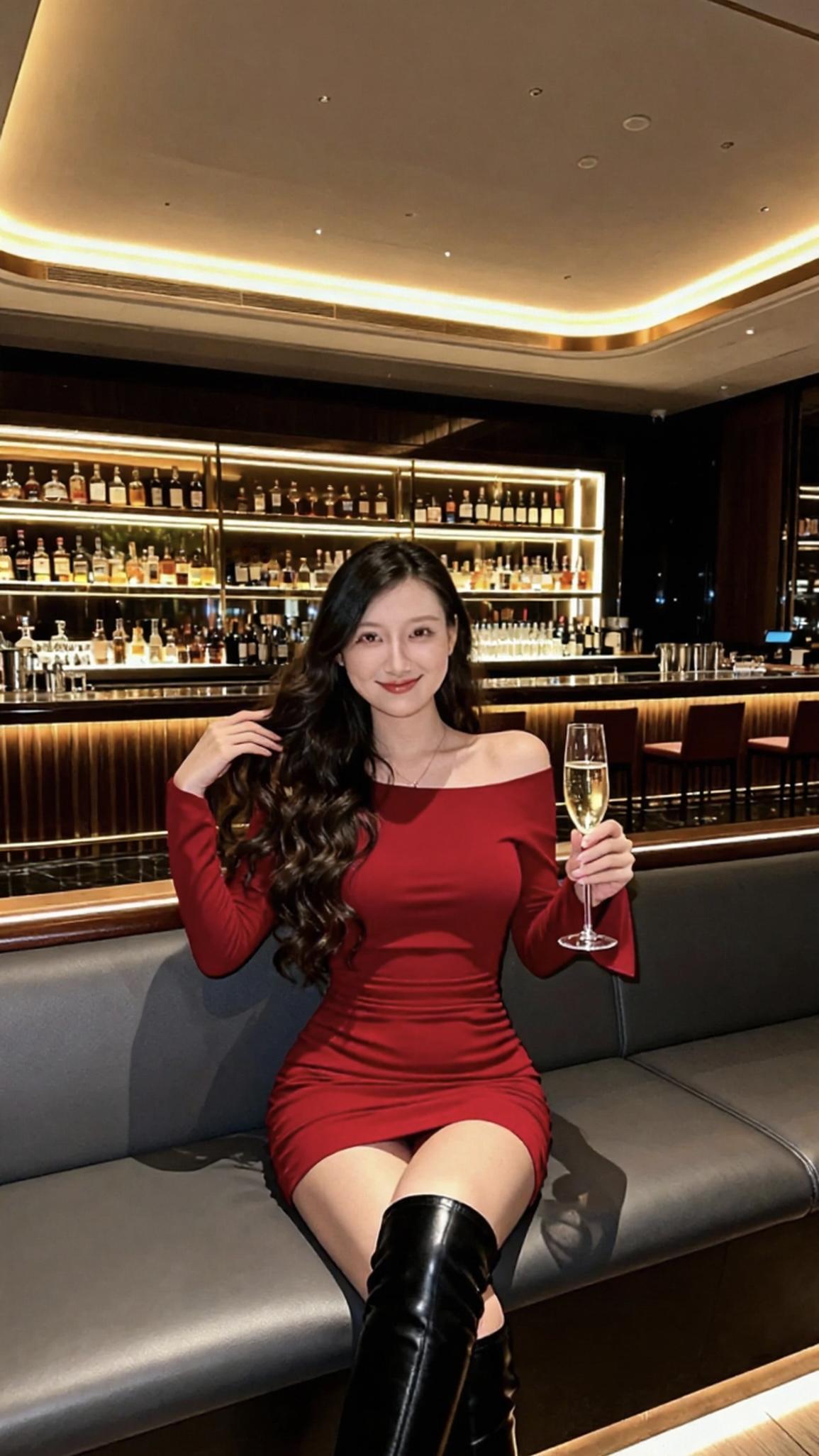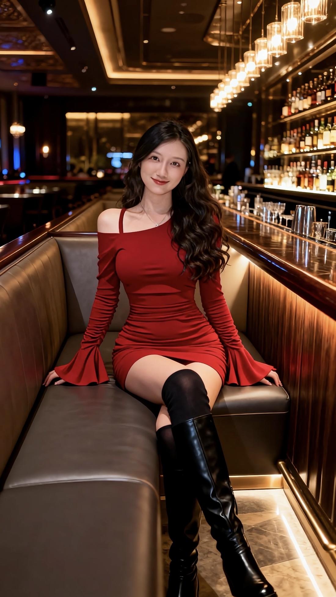 今晚的酒吧,我的小红裙配上这高筒靴,从这刻开始,微醺就是美。 小红裙 高筒靴搭