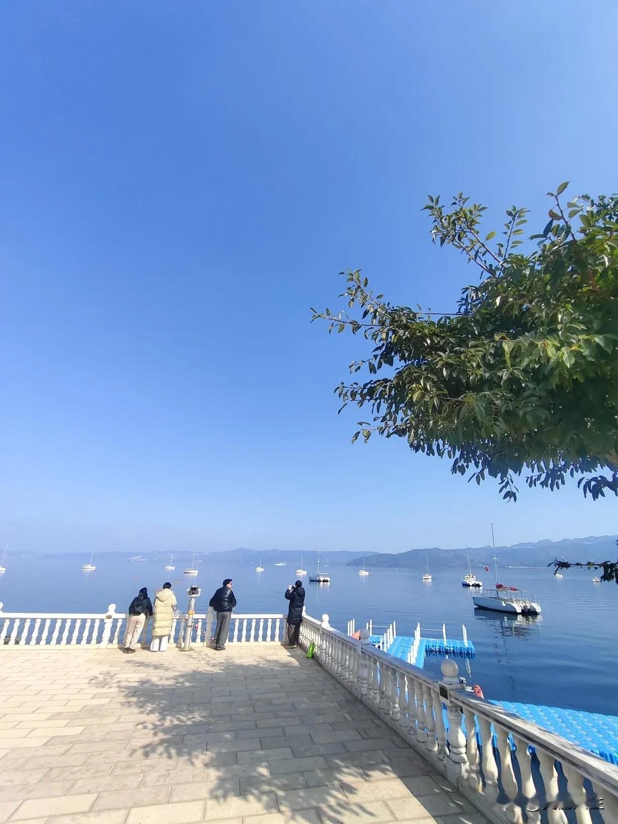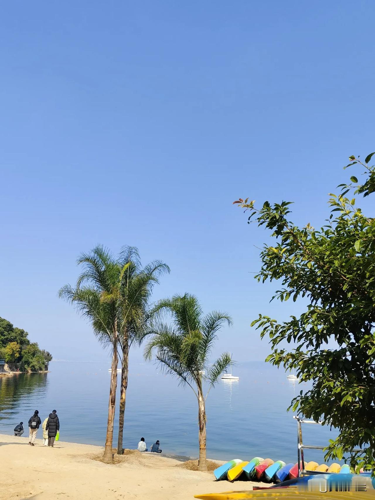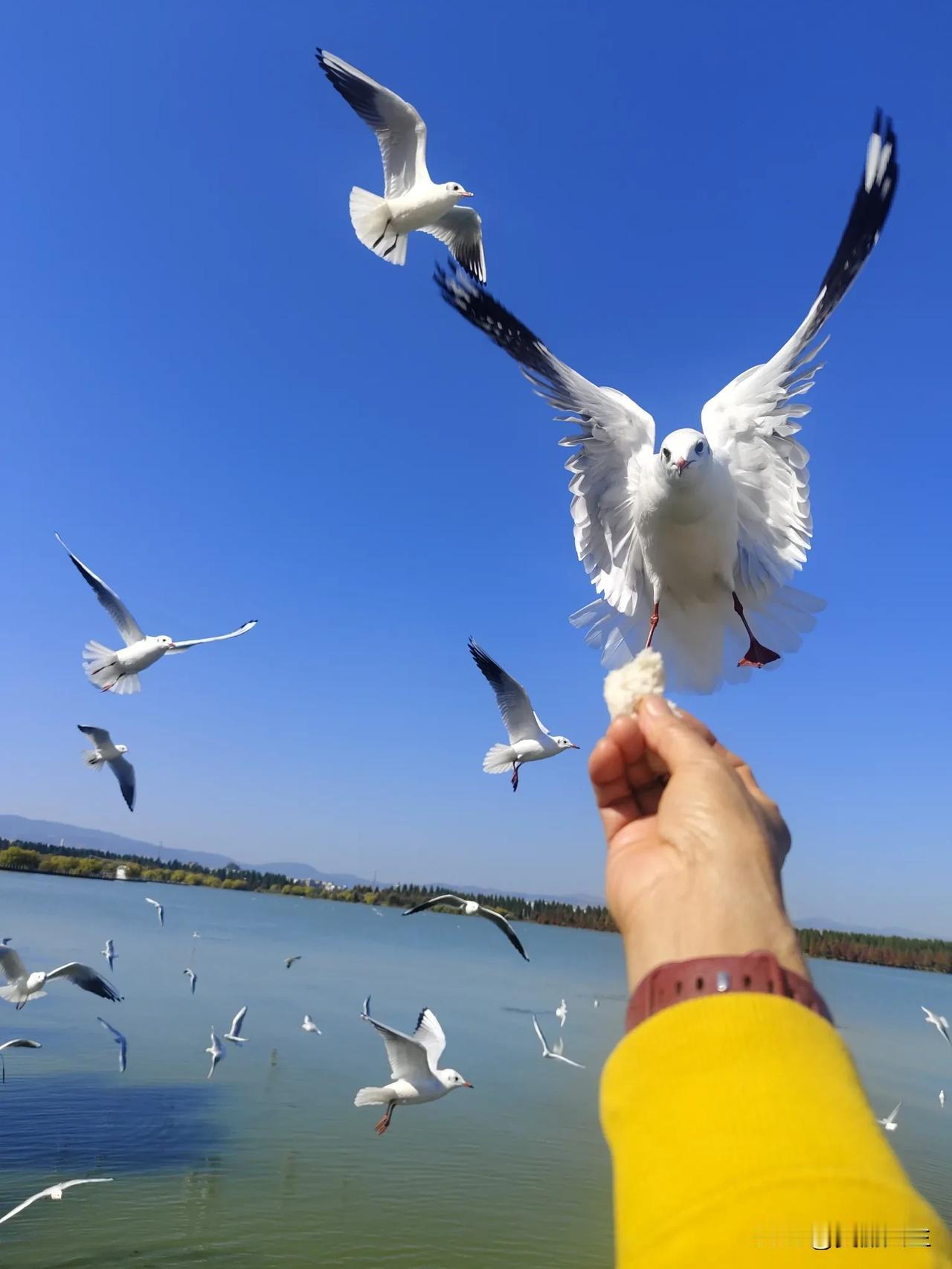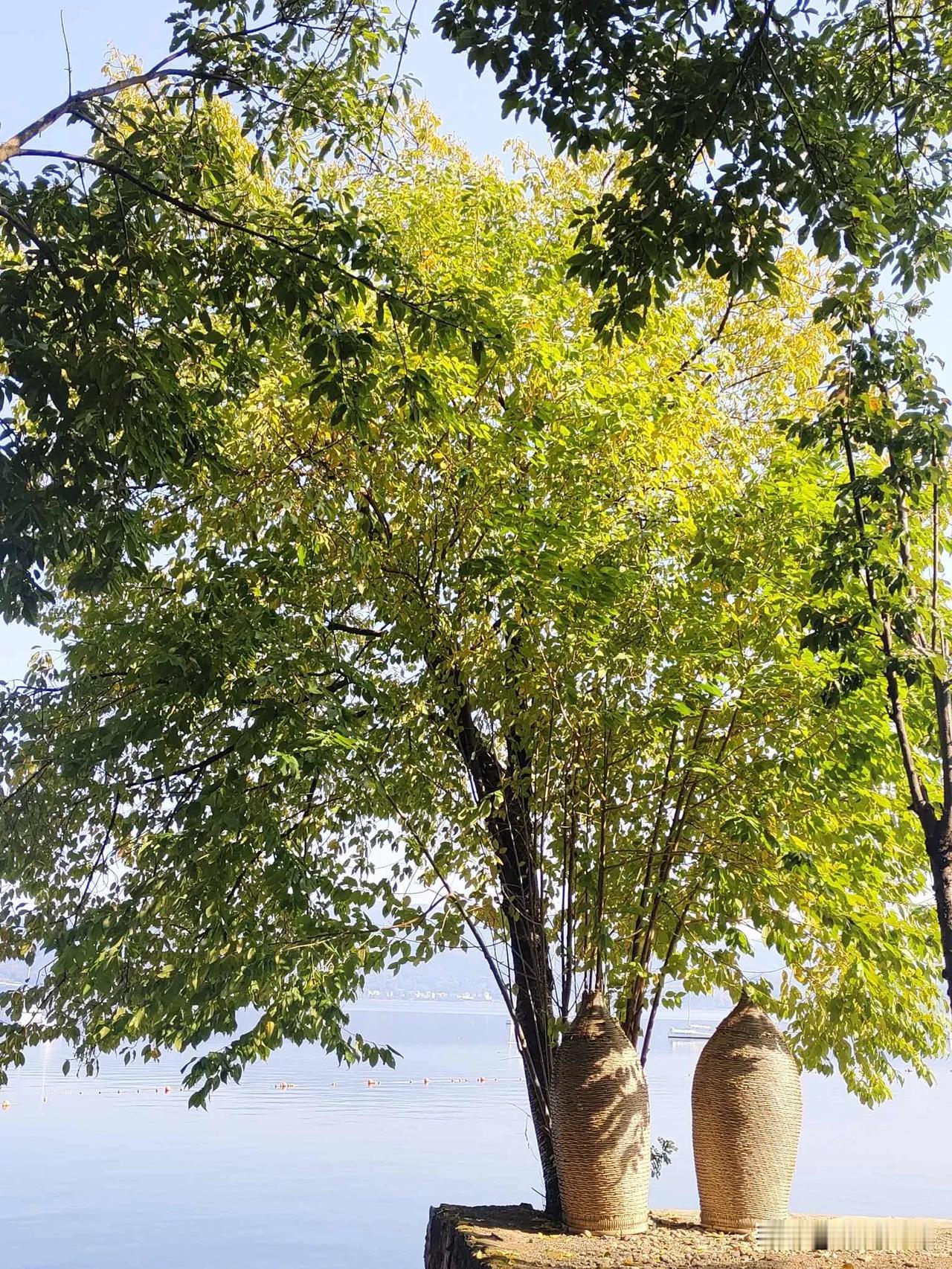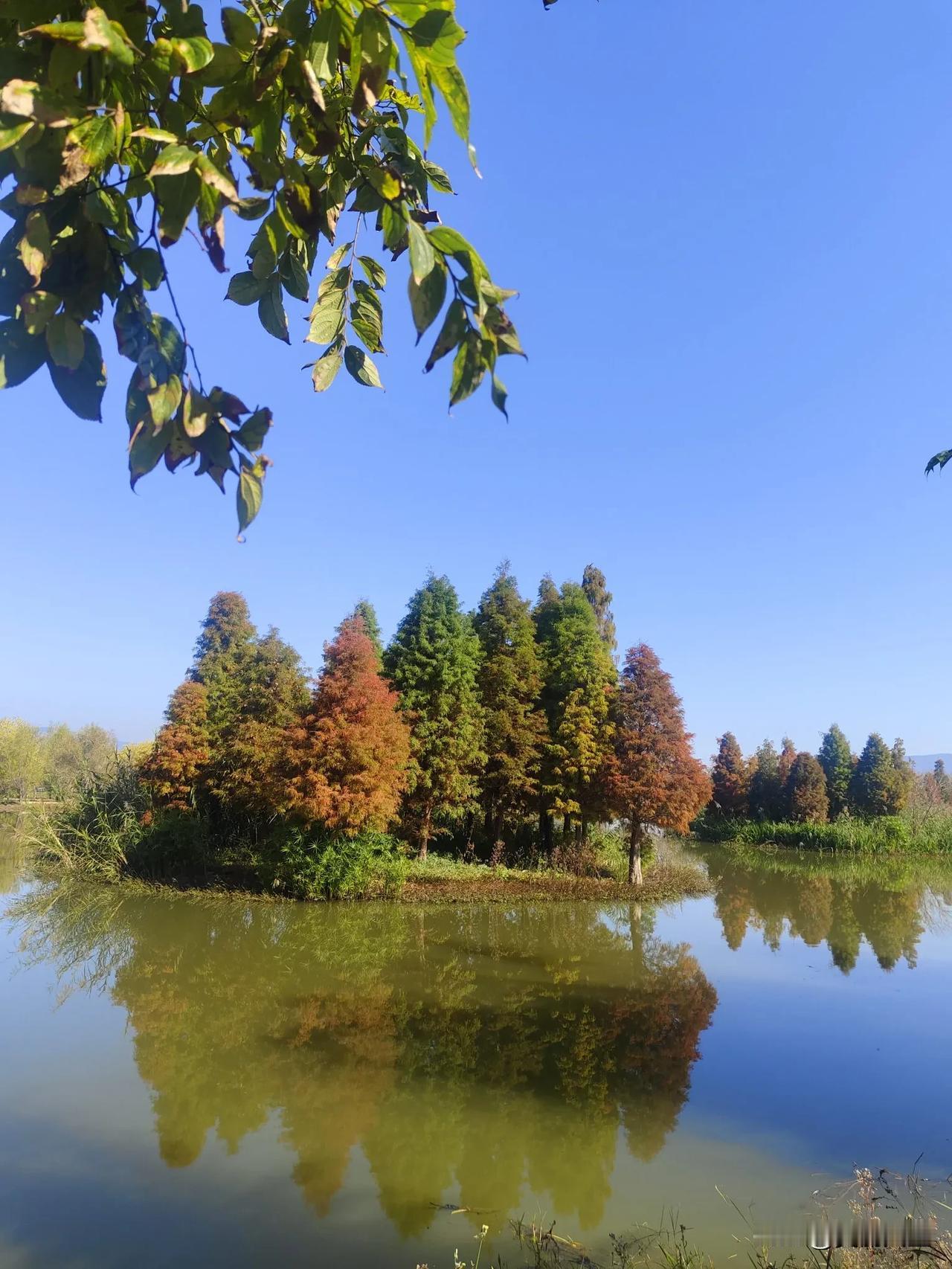 天蓝蓝水蓝蓝, 海鸥飞来水杉黄, 好一幅美不胜收画面