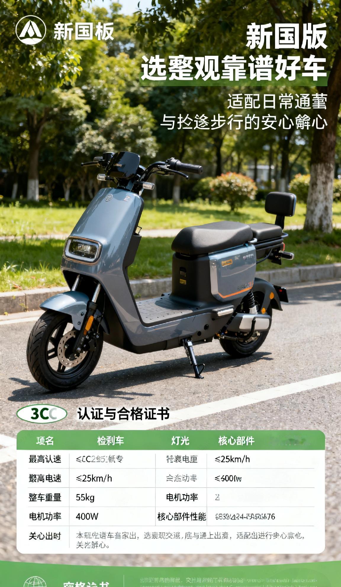 选新国标电动车,先核3C认证与合格证书,确认最高时速≤25km/h、整车重量≤55kg、电机功率≤400W,贴合当地上牌要求。按需挑选适配续航,仔细检查刹车、灯光等核心部件性能。选合规靠谱好车,出行安心又省心,适配日常通勤与短途出行,每一步都护你顺畅前行~(个人观点,仅供参考)
