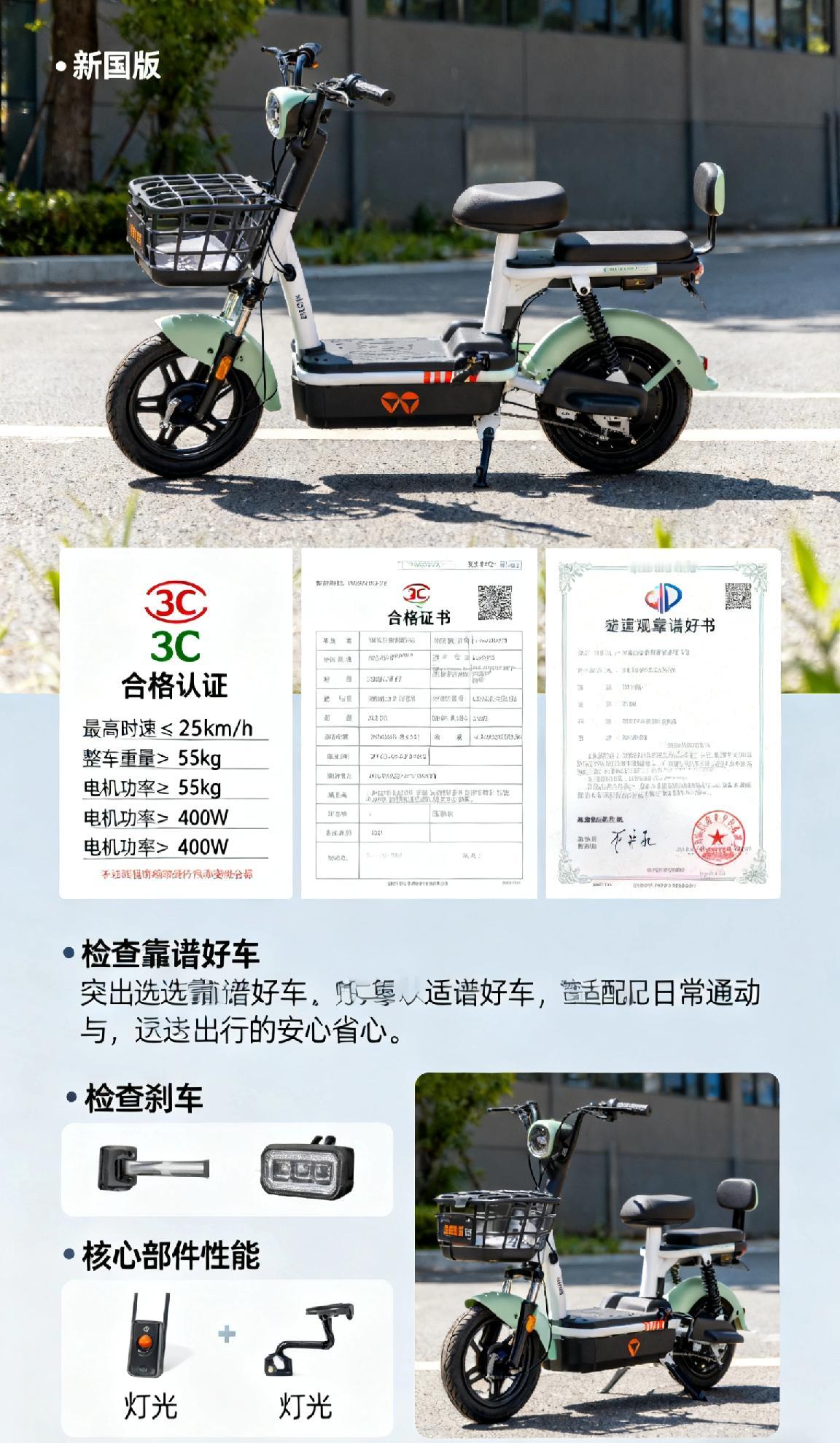 选新国标电动车,先核3C认证与合格证书,确认最高时速≤25km/h、整车重量≤5