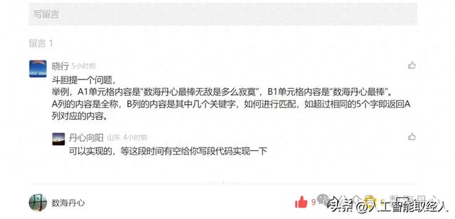 1.粉丝的挑战和我朋友的窘境一位粉丝朋友在微信公众号文章后面上言:“斗胆提一个问题,A1单元格内容是‘数海丹心最棒无敌是多么寂寞’,B1单元格内容是‘数海丹心最棒’。A列的内容是全称,B列的内容是其中几个关键字,如何进行匹配,如超过相同的5个字即返回A列对应的内容。”
